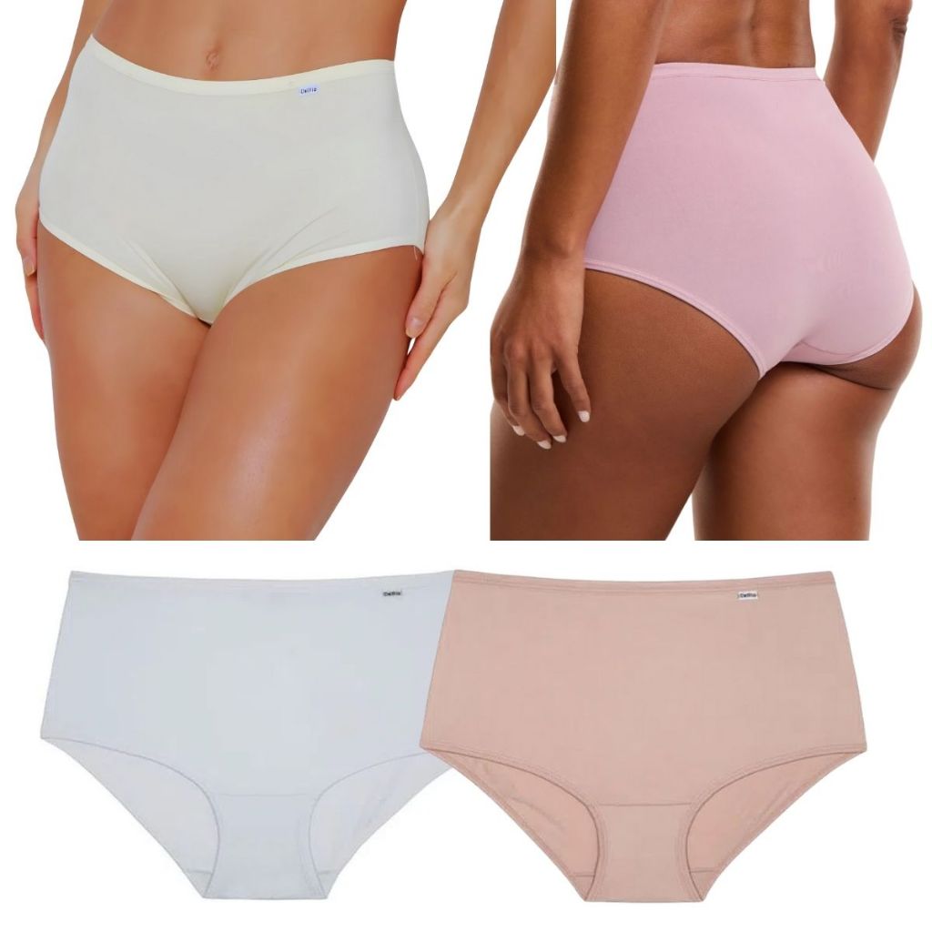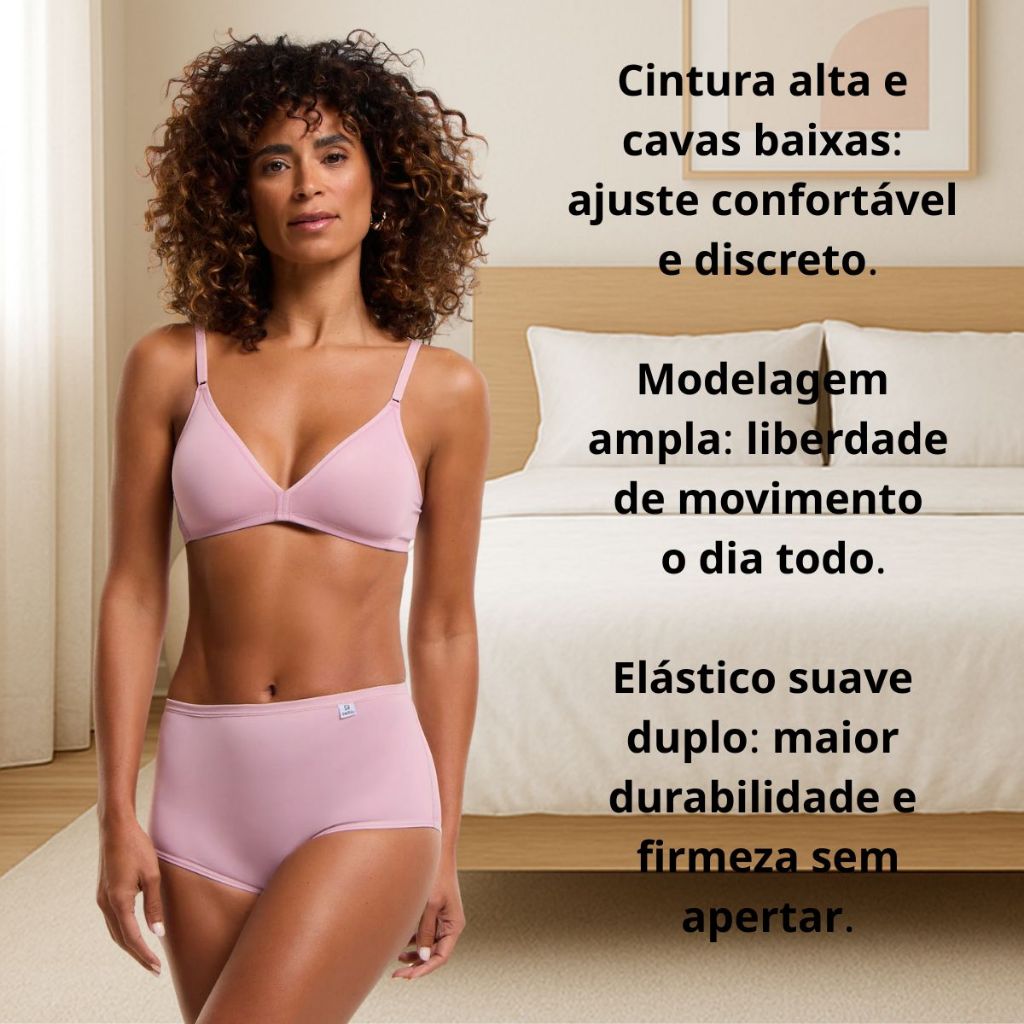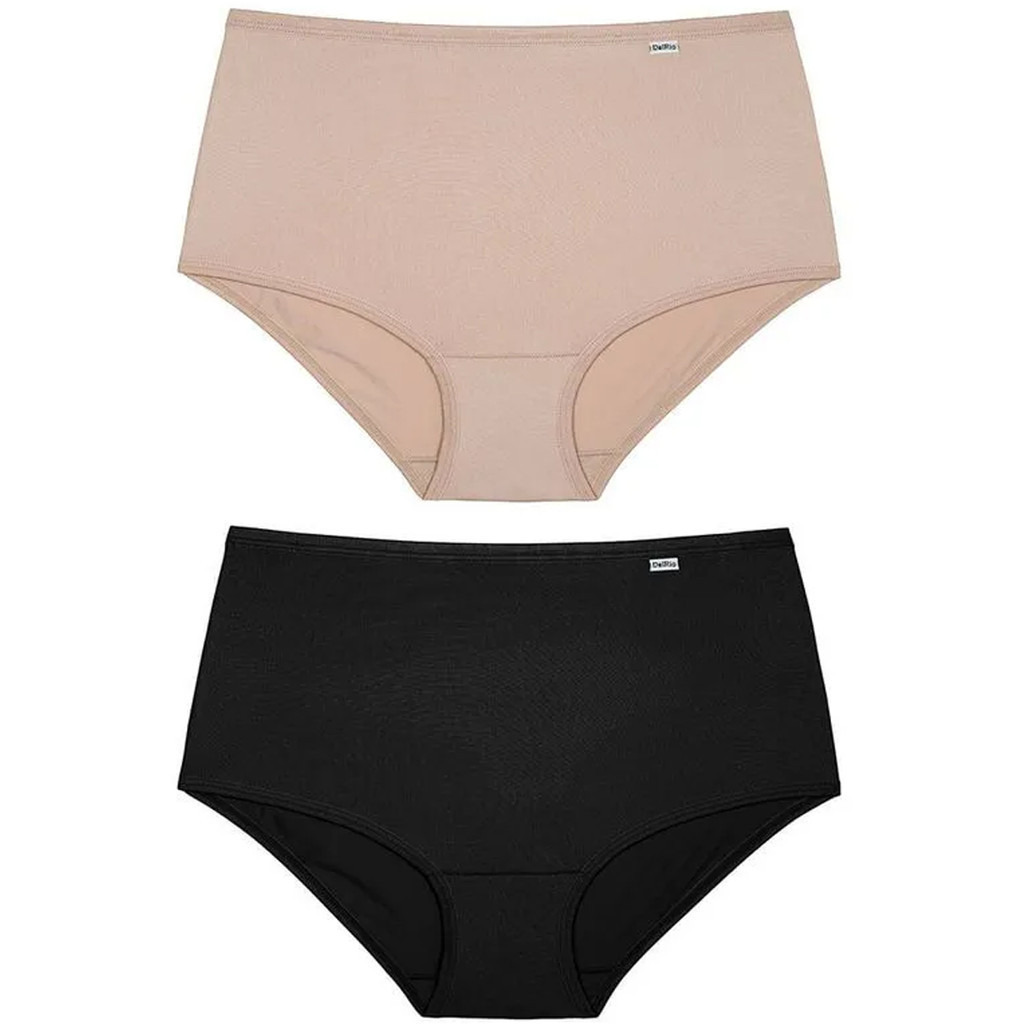 Kit 2 Calcinha Cintura Alta DelRio Classica Lateral Larga Macia Tecido Microfibra Presente Mae Sogra Madrasta