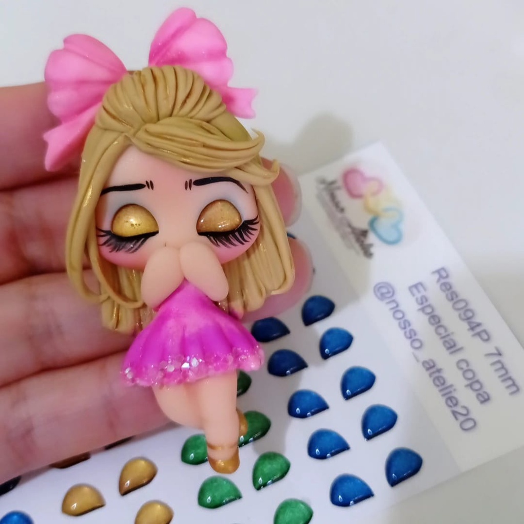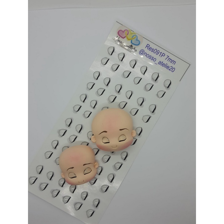 OLHO ADESIVO RESINADO PÁLPEBRA TRANSPARENTE REF 091 para apliques de biscuit e bonecas artesanais.