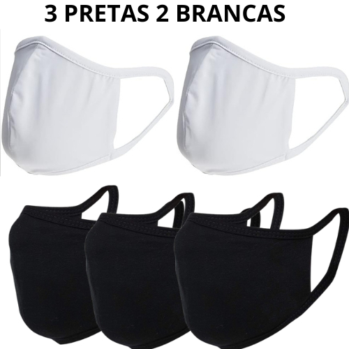 Kit 5 Máscaras Antibacteriana Reutilizável Tecido Lavável Dupla Camada De Proteção Algodão Preto