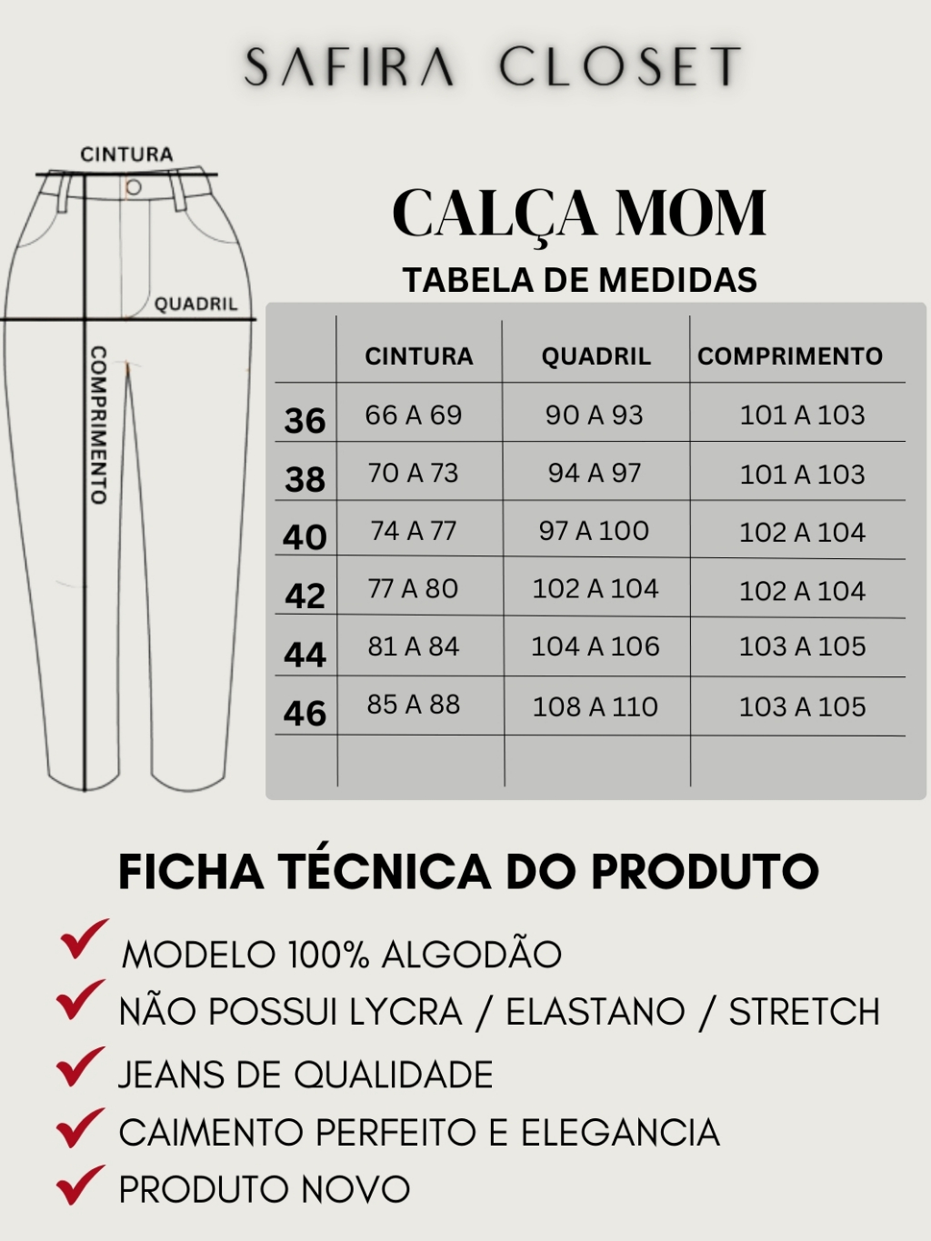 Calça MOM Jeans Destroyed 100% Algodão Cintura Alta Sem Lycra