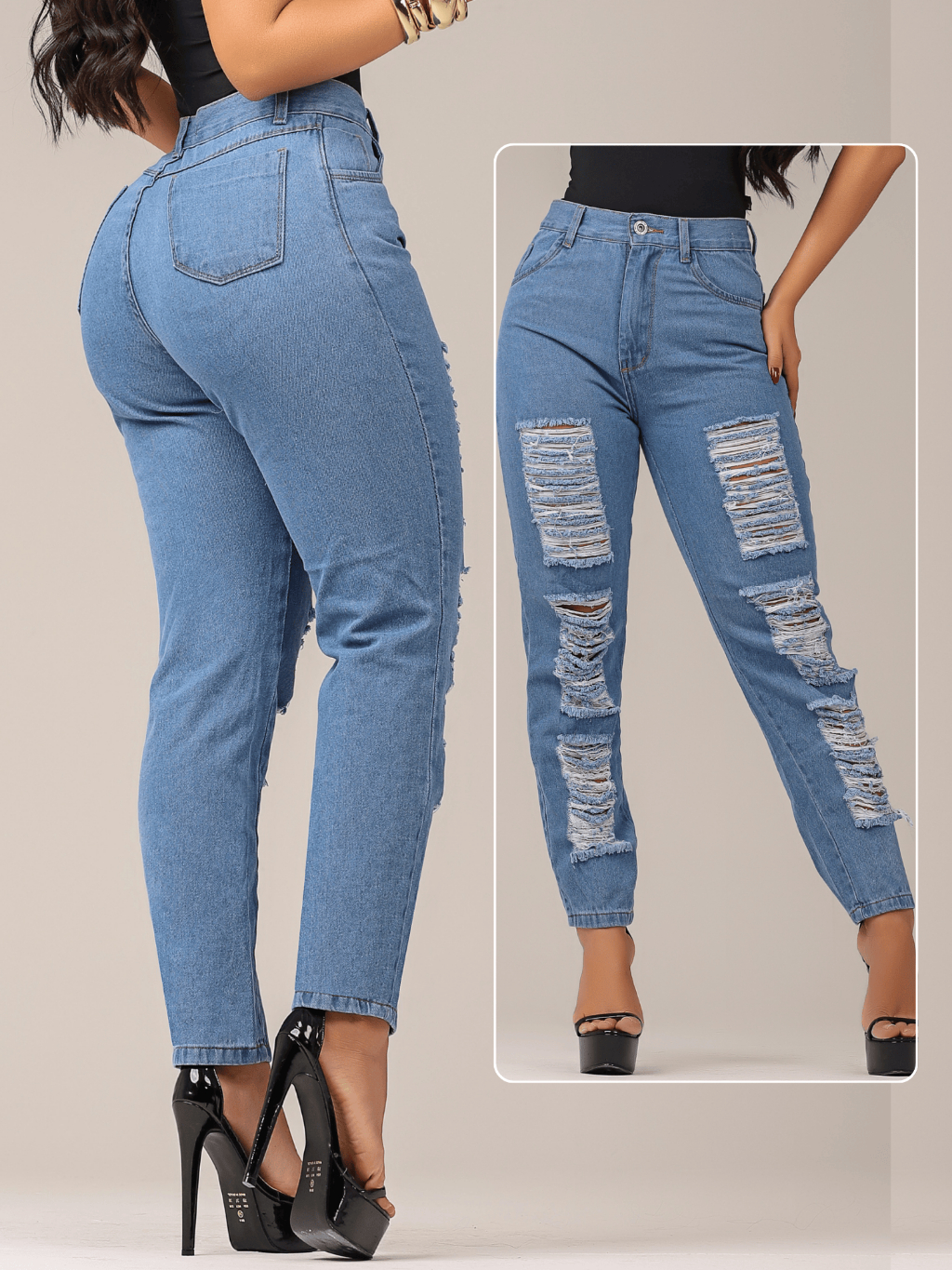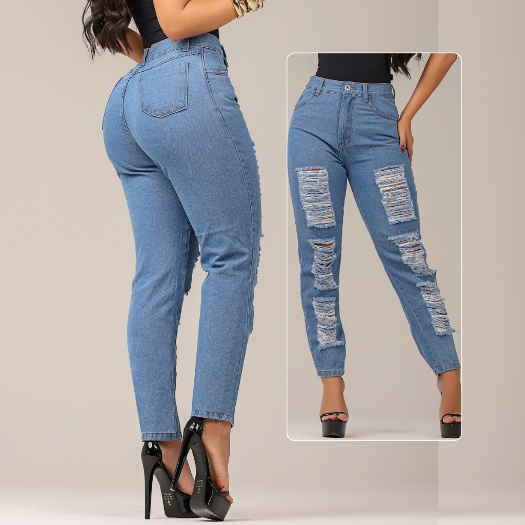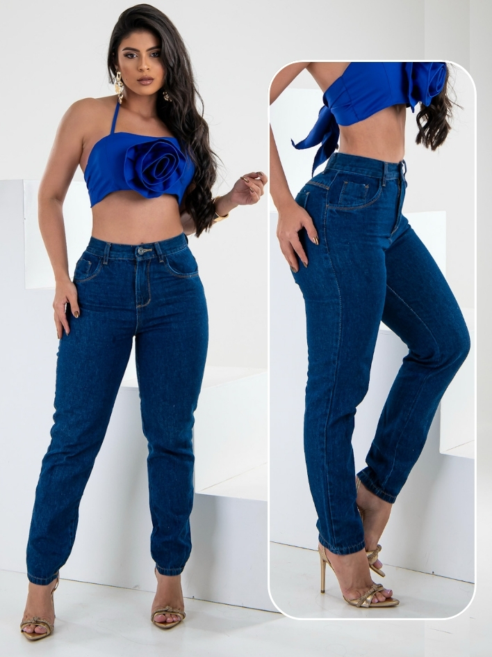 Calça MOM Jeans Marmorizada 100% Algodão Cintura Alta Sem Lycra