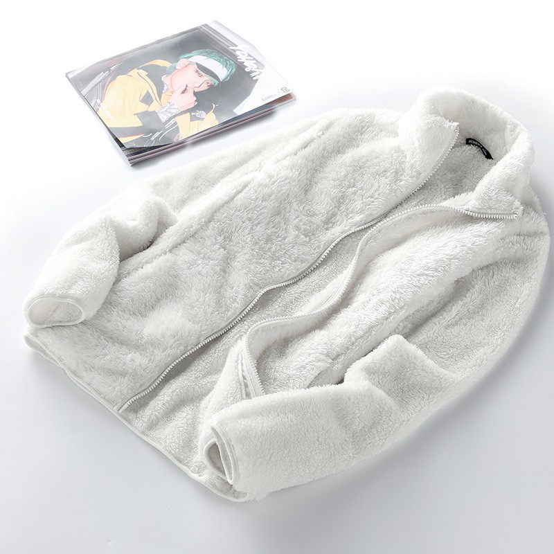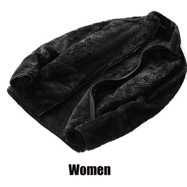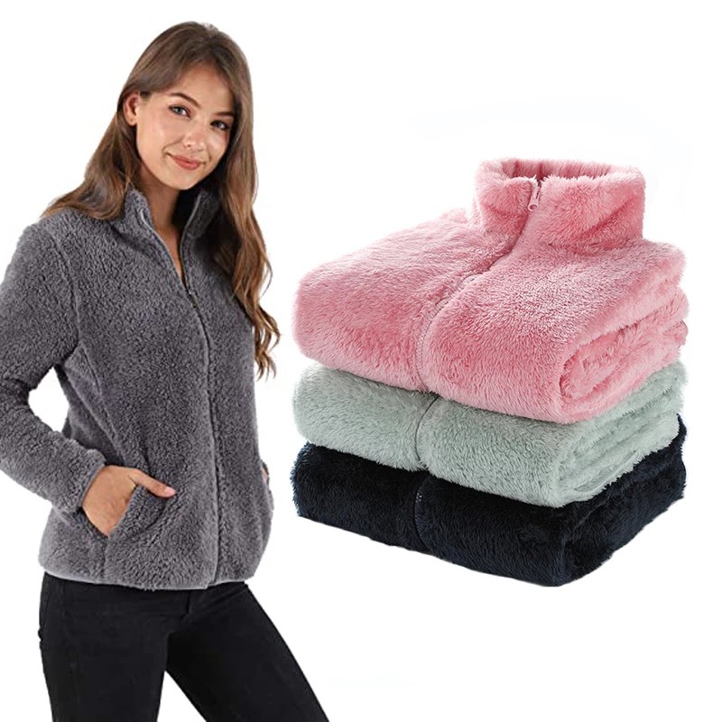 Casaco feminino de lã de fio macio com zíper completo jaqueta barata dupla face adulto Casaco de lã de inverno para homem com decote alto