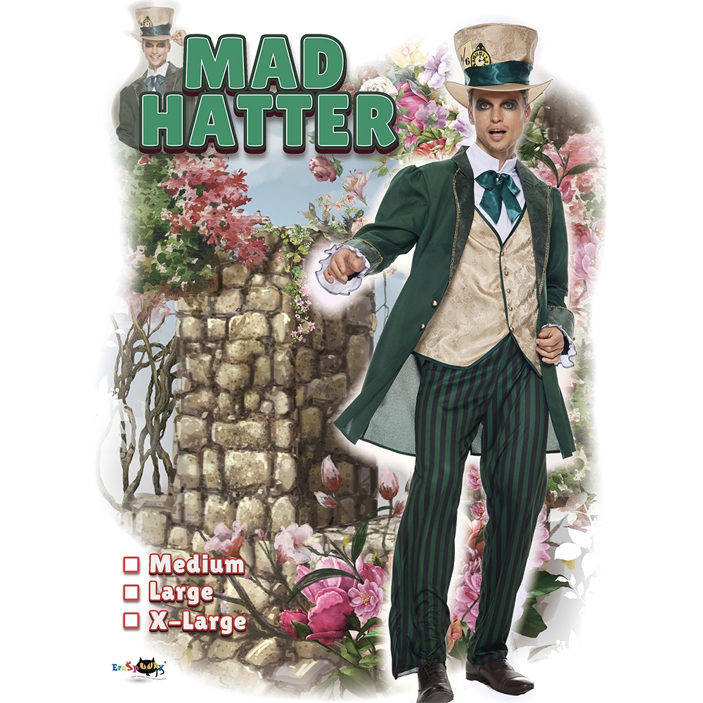 Fantasia masculina de Chapeleiro Maluco Deluxe 4 peças com jaqueta, pescoço, gravata, chapéu Casal adulto Alice no país das maravilhas Prince Princess Cosplay Outfit Vestir-se homem e mulher para festa de Halloween no palco