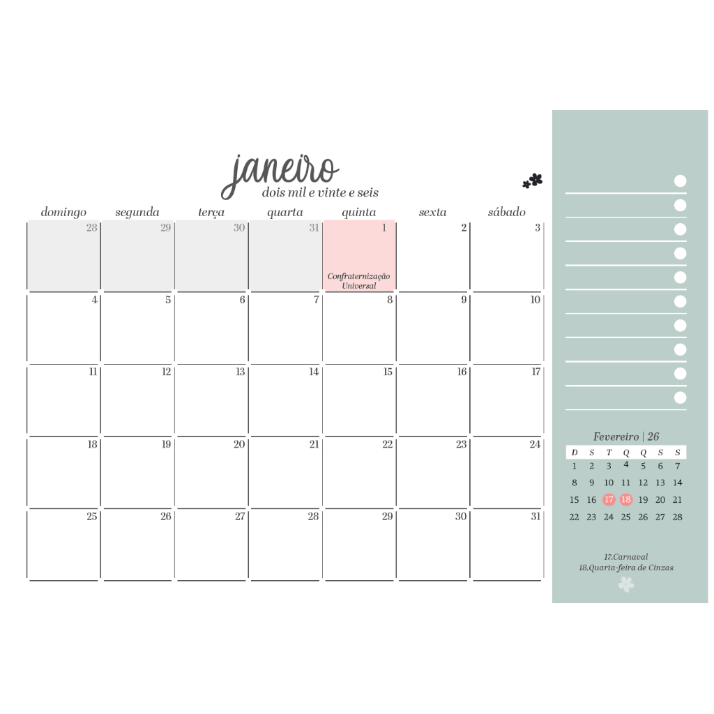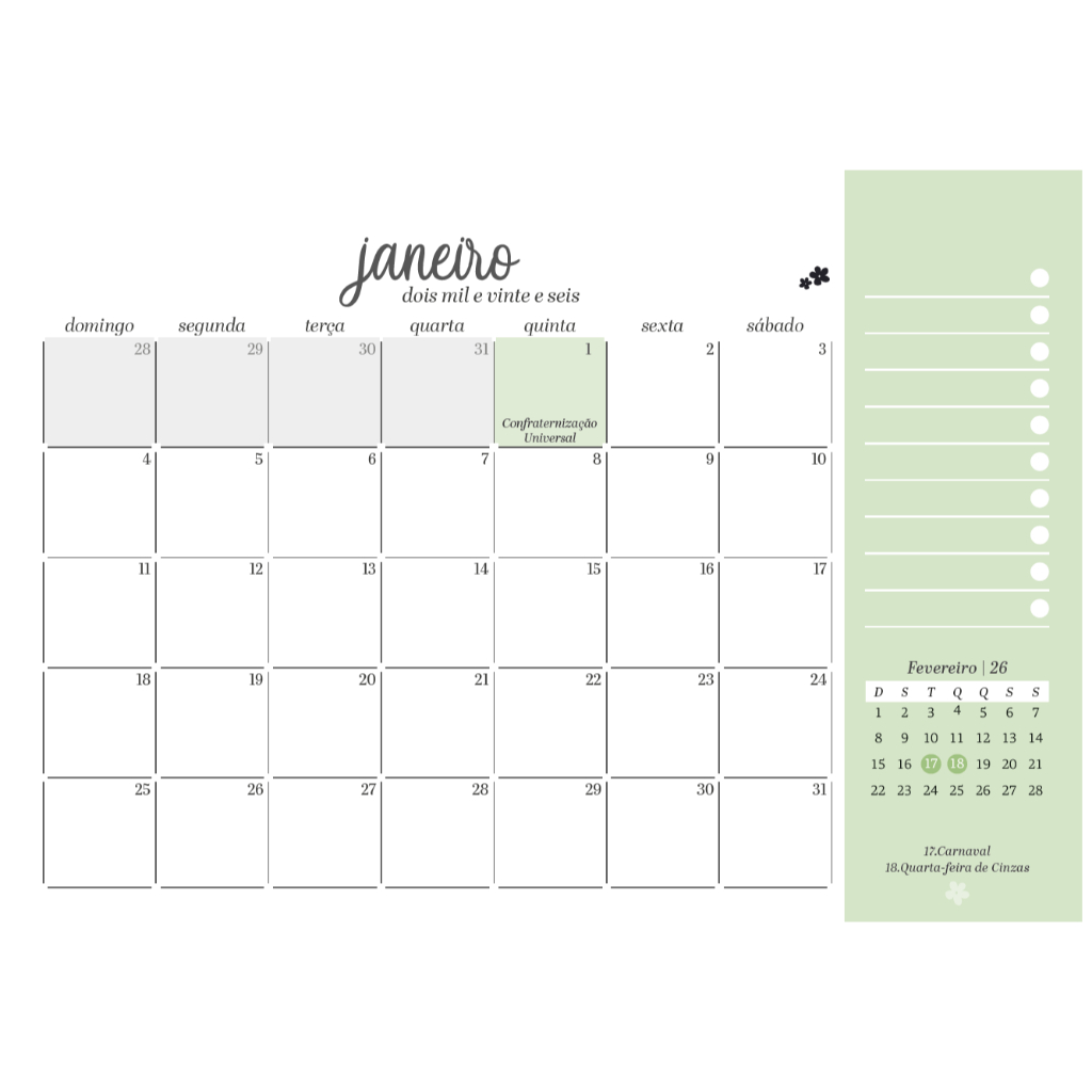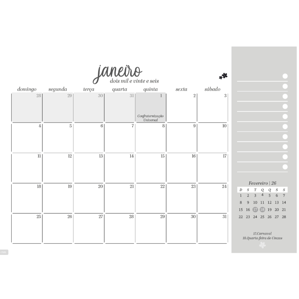 Calendário Papel 2026 calendario de mesa em papel