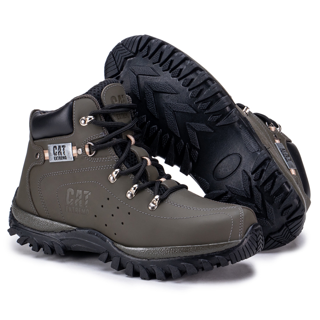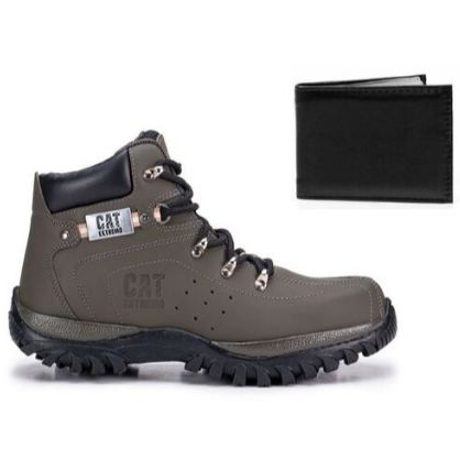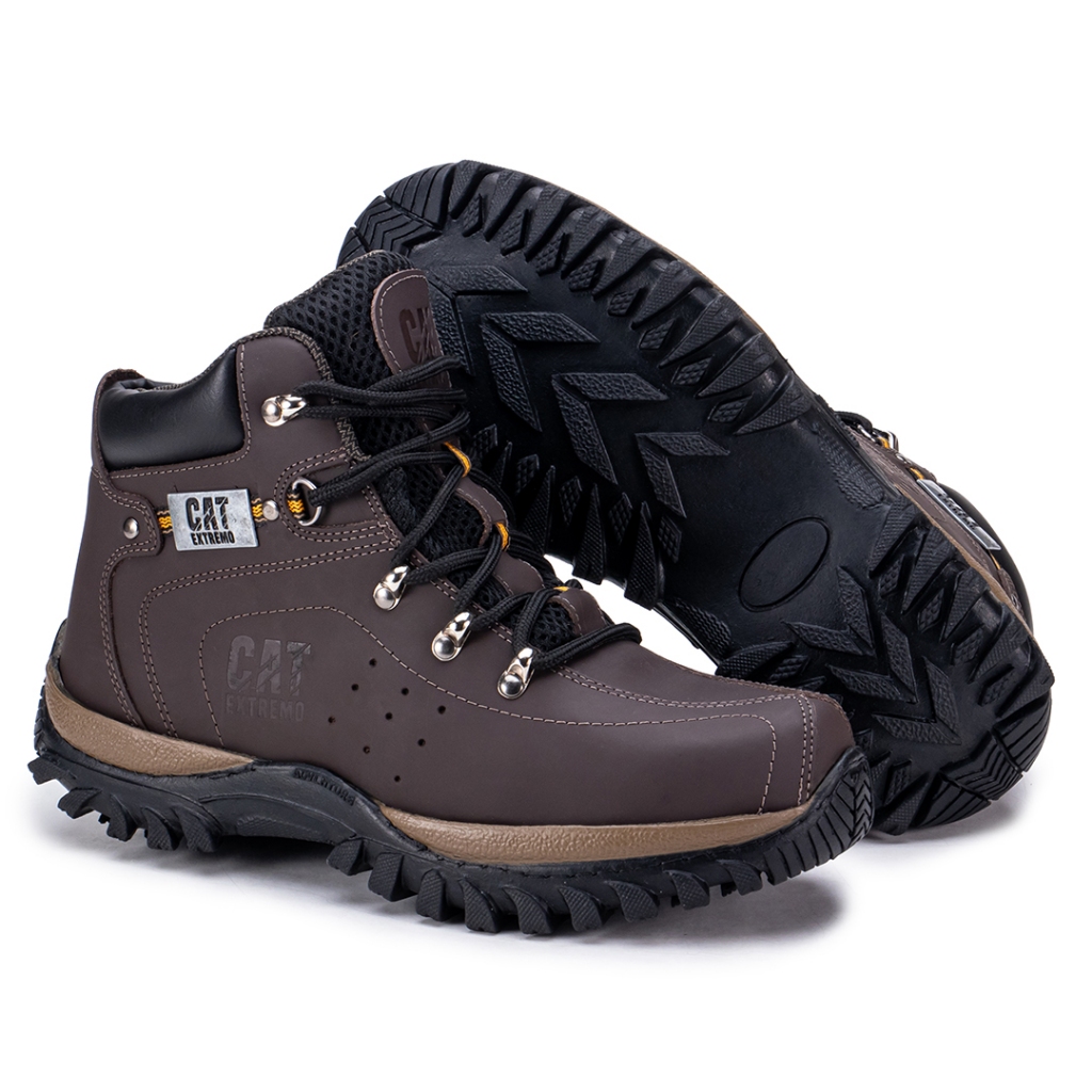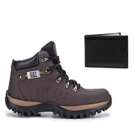 Coturno Masculino Adventure Cat Extremo Com CA Original Couro Genuíno Emborrachado Trilha + Carteira