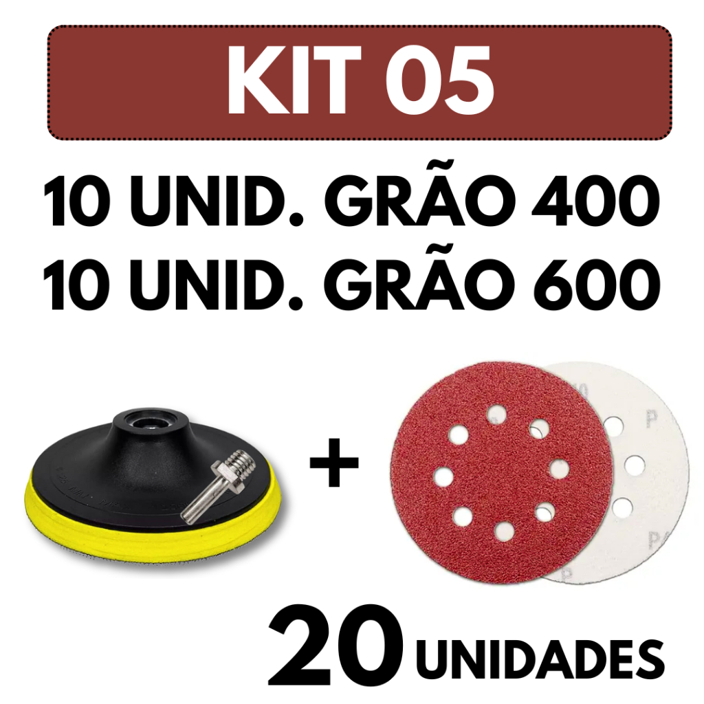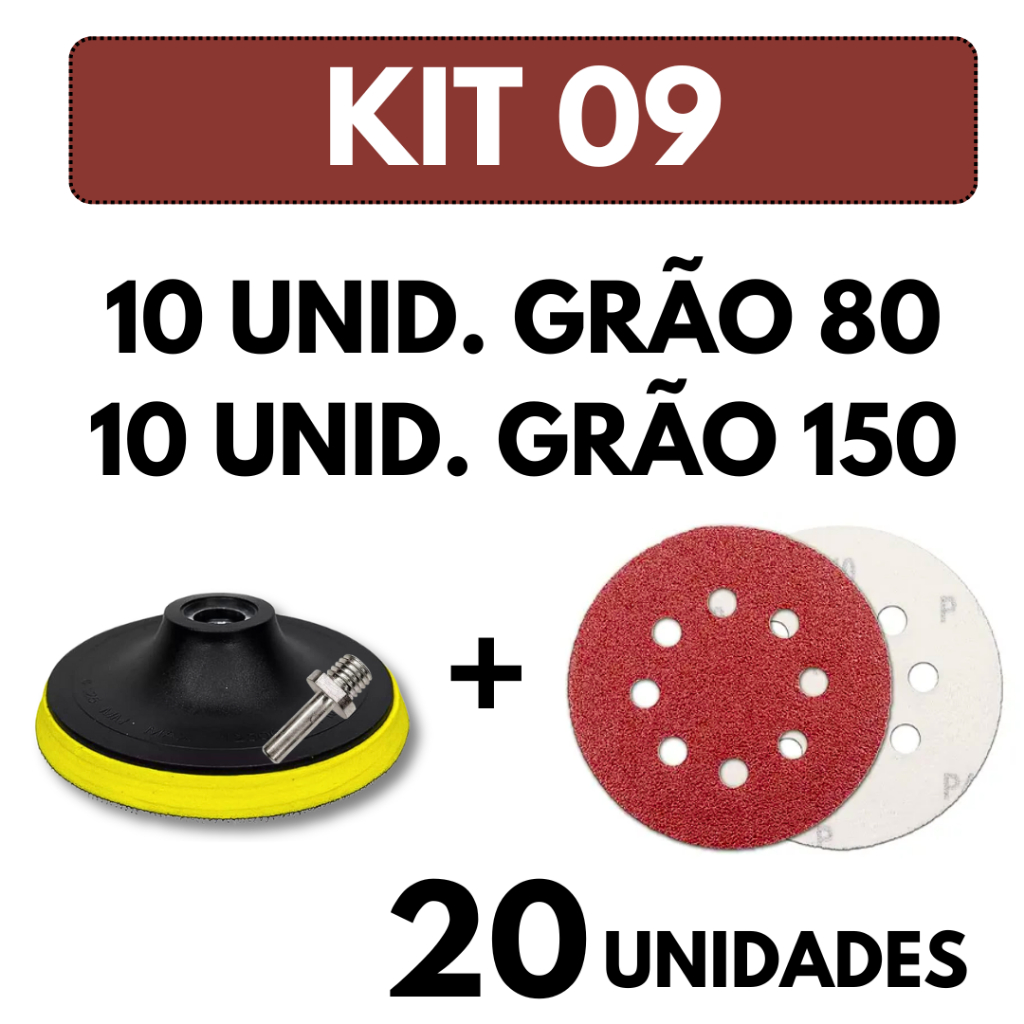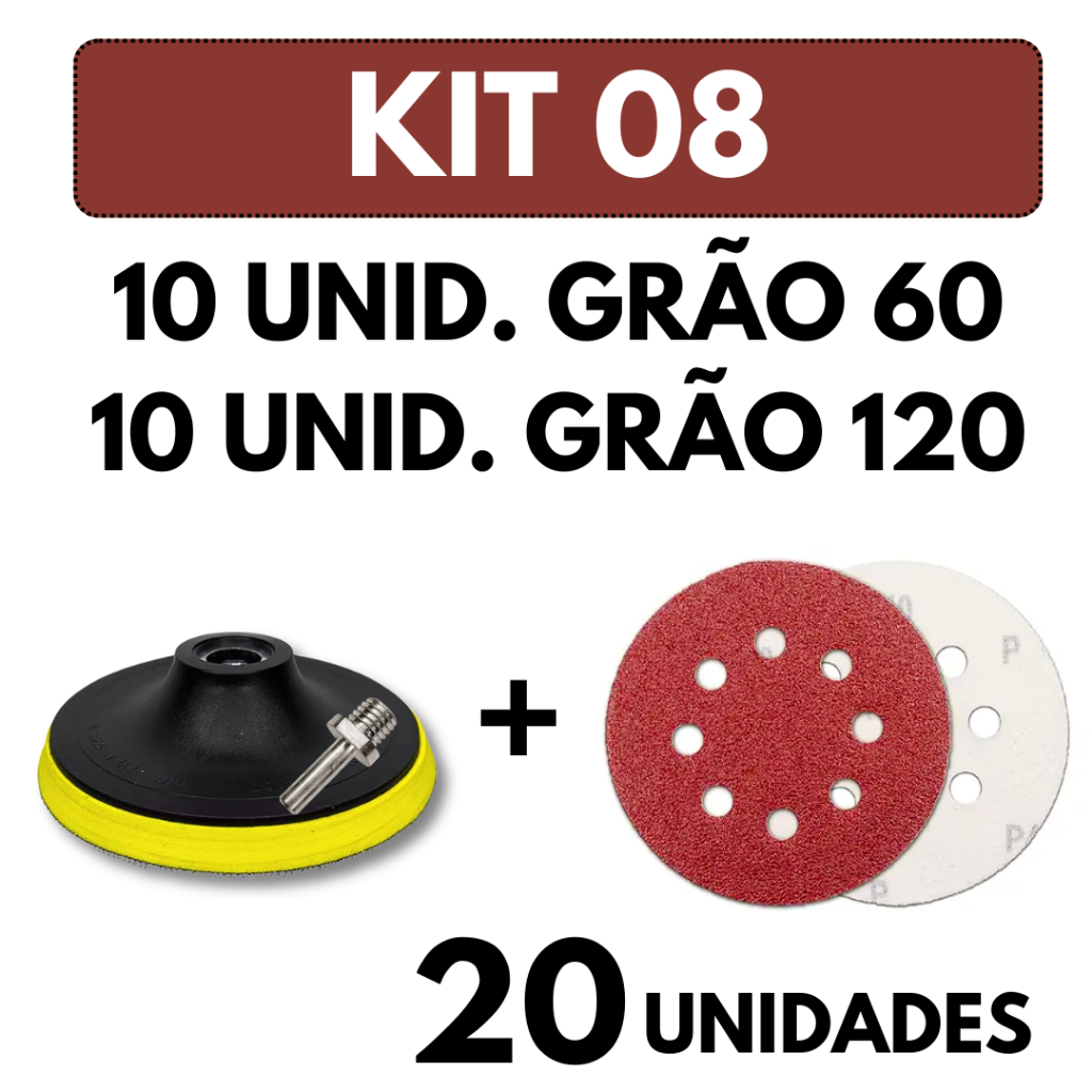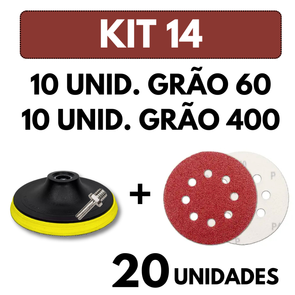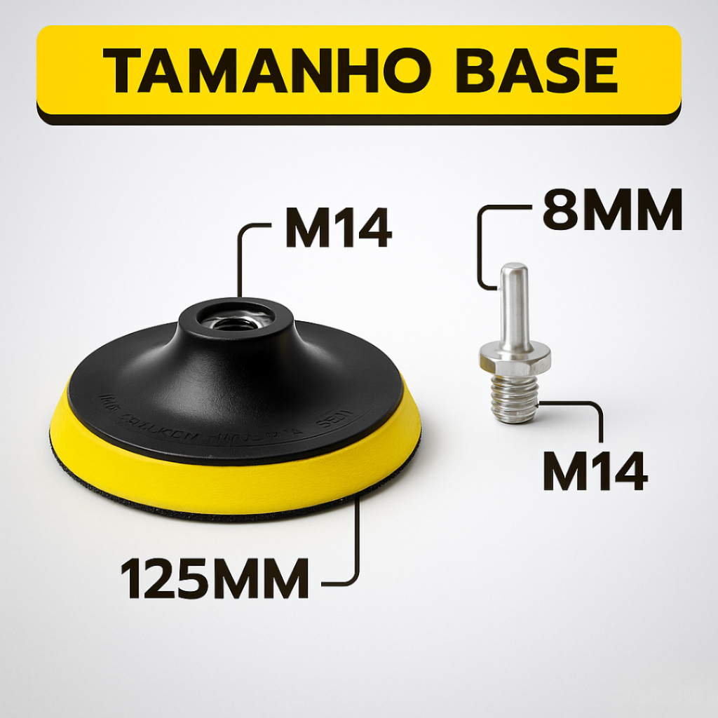 Kit Base Suporte 125mm com Adaptador M14 + 20 Lixas 8 Furos Com Velcro 5" Furadeira Esmerilhadeira Lixadeira Roto Orbita
