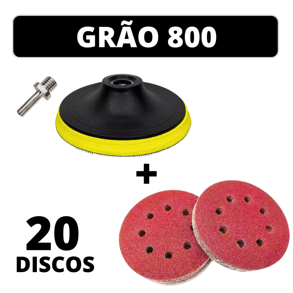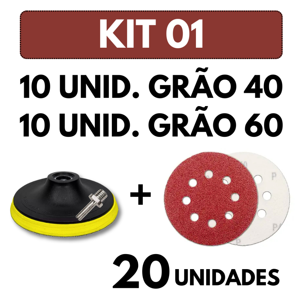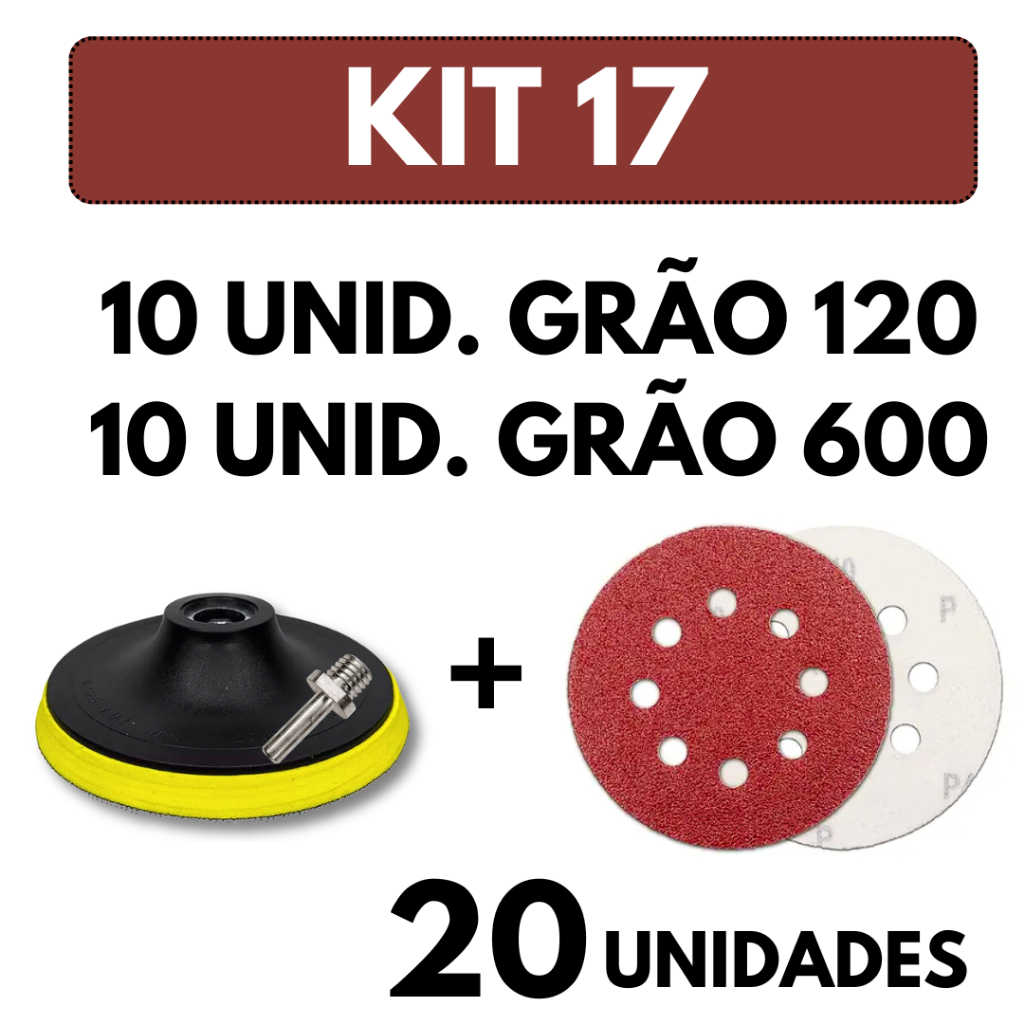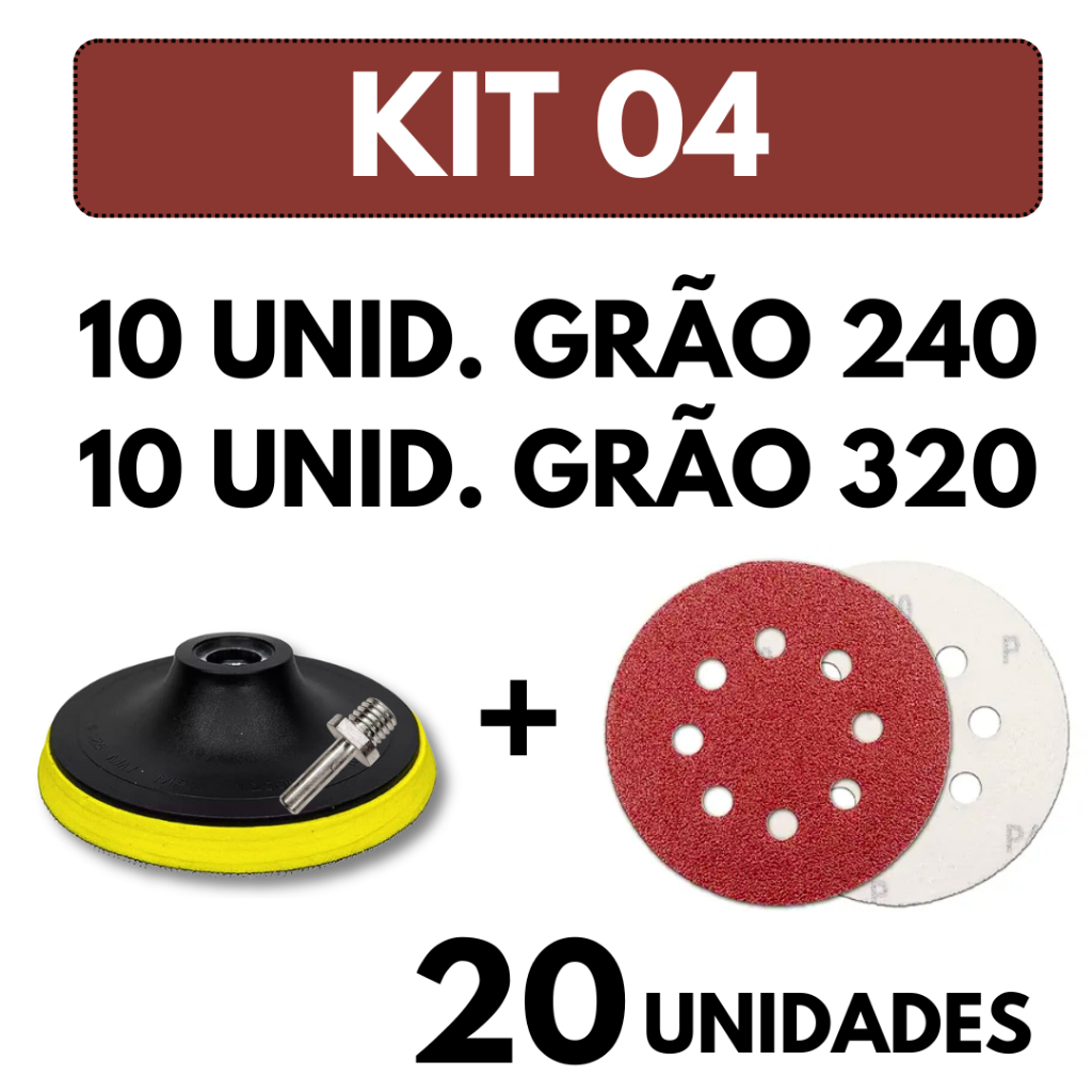 Kit Base Suporte 125mm com Adaptador M14 + 20 Lixas 8 Furos Com Velcro 5" Furadeira Esmerilhadeira Lixadeira Roto Orbita