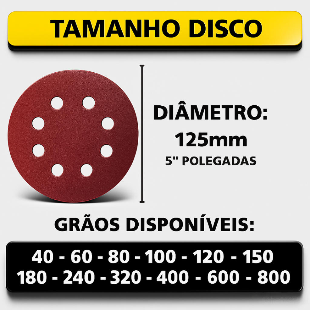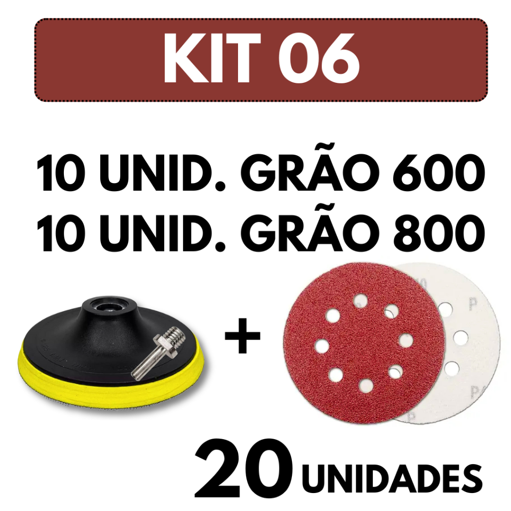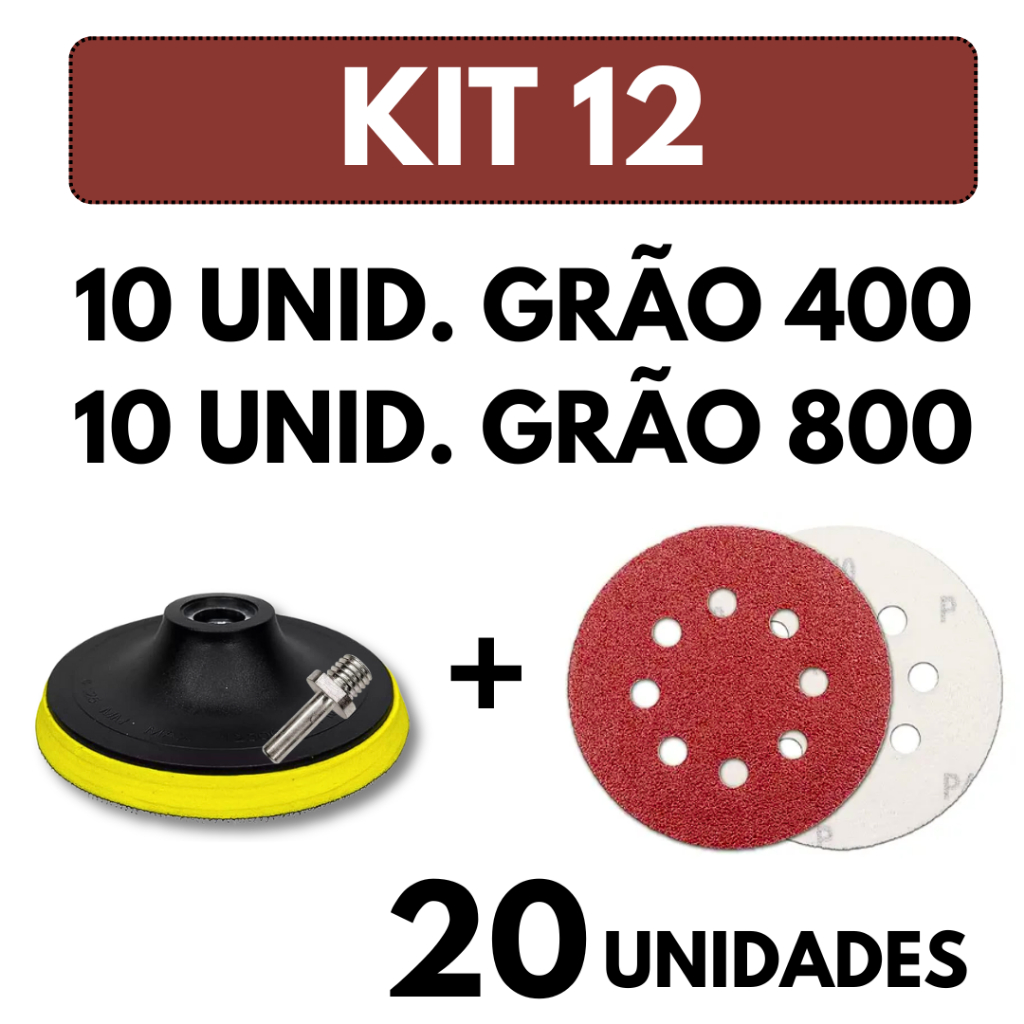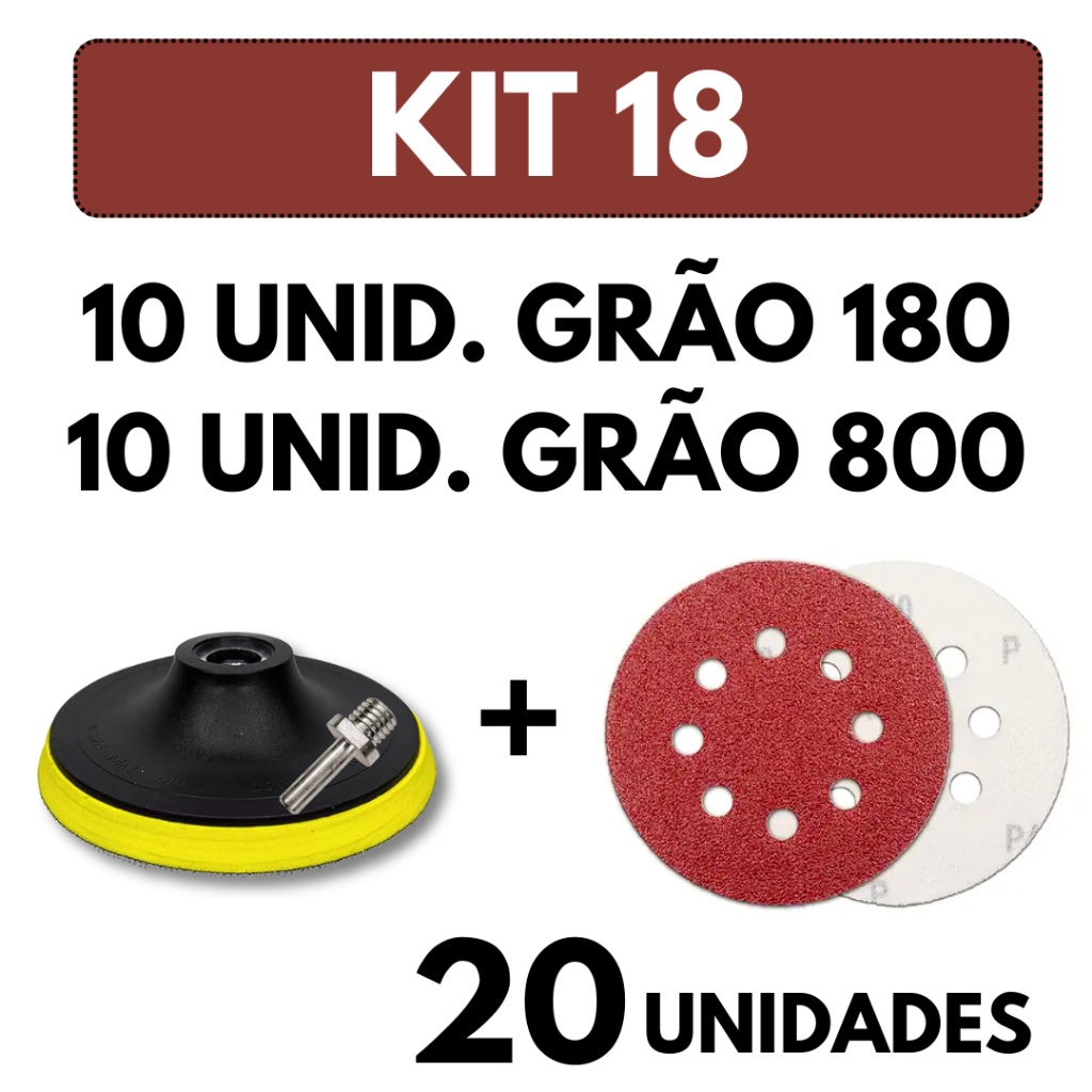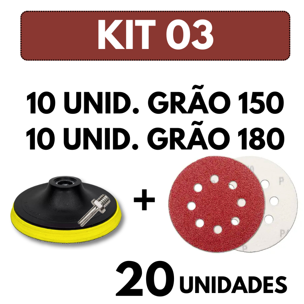 Kit Base Suporte 125mm com Adaptador M14 + 20 Lixas 8 Furos Com Velcro 5" Furadeira Esmerilhadeira Lixadeira Roto Orbita