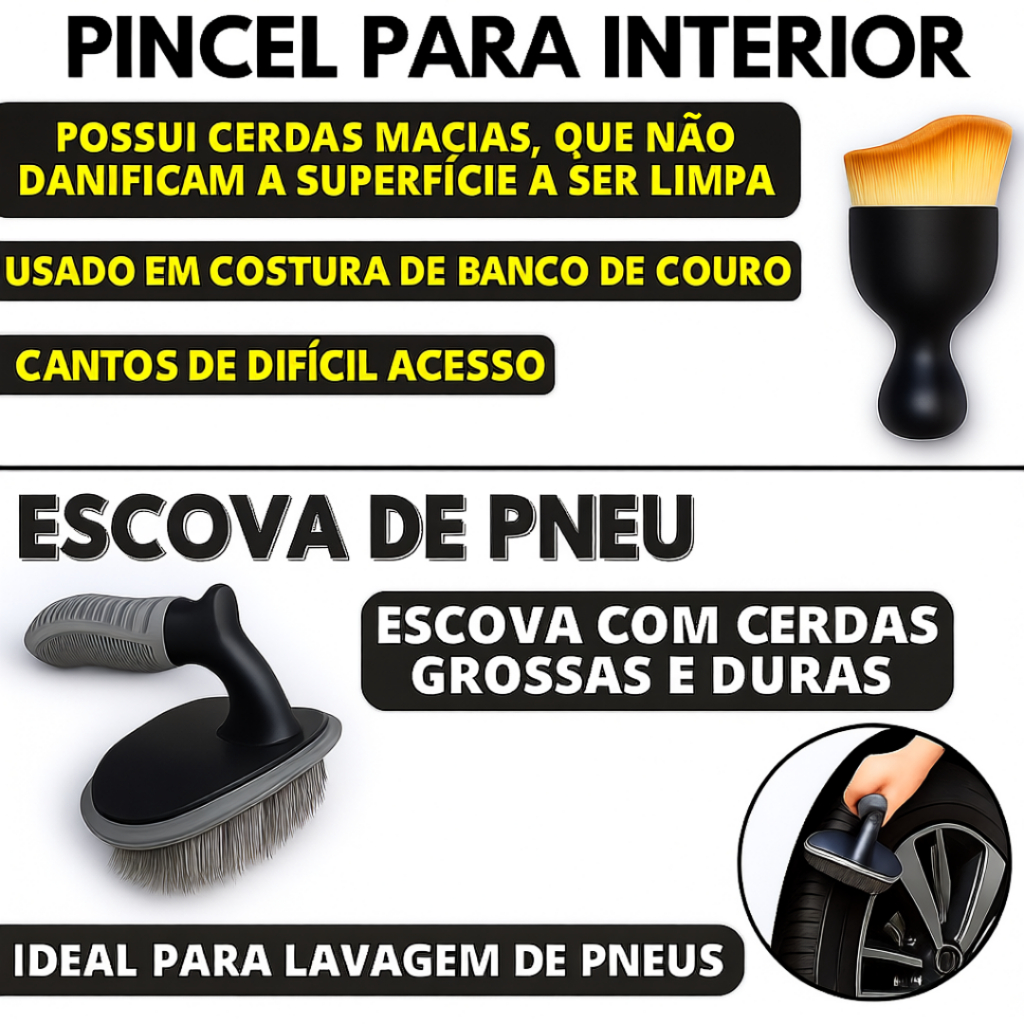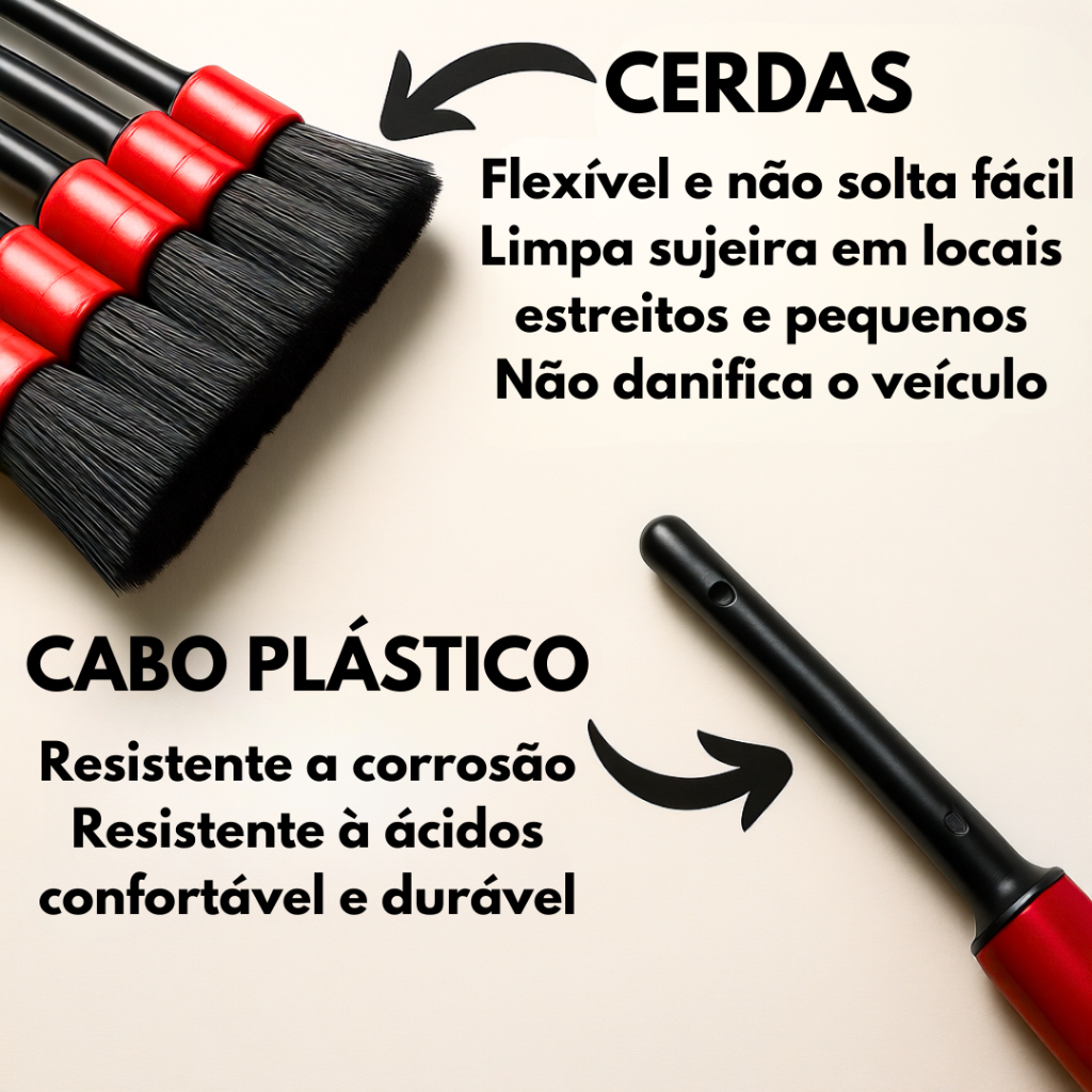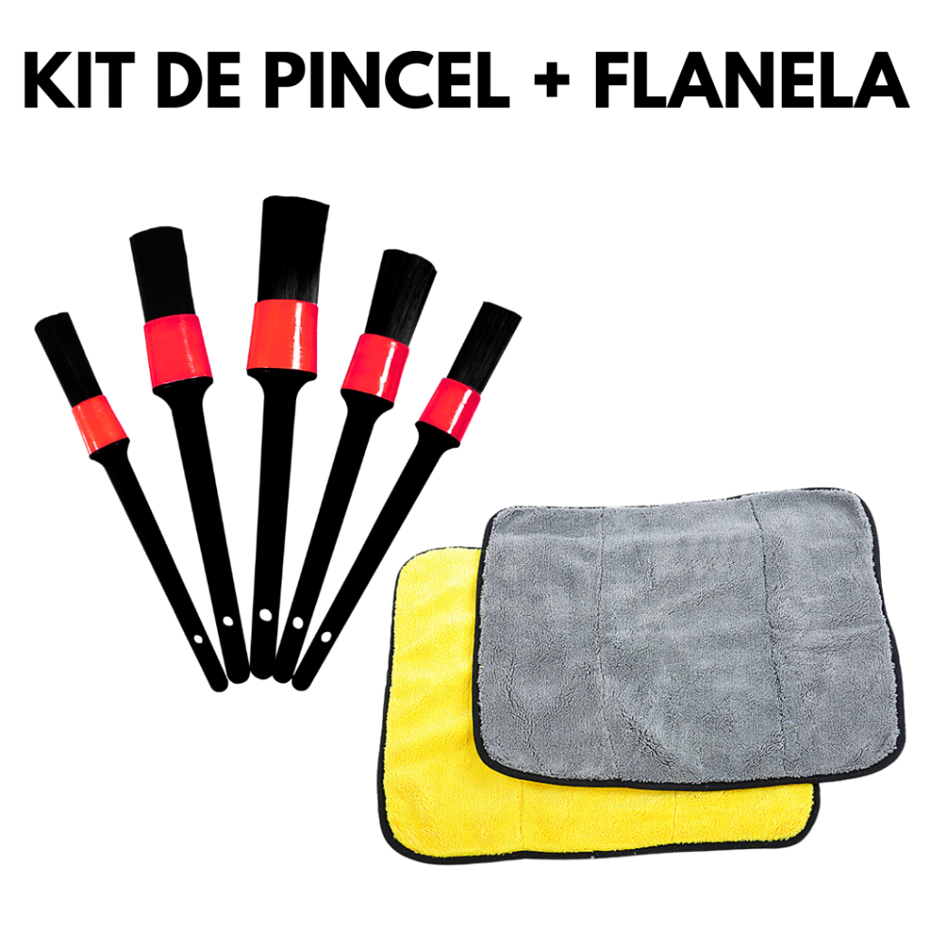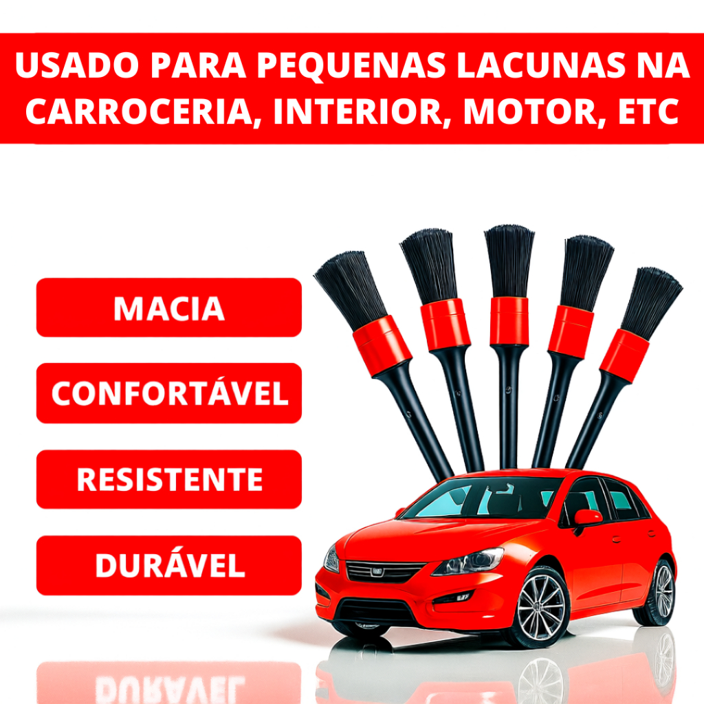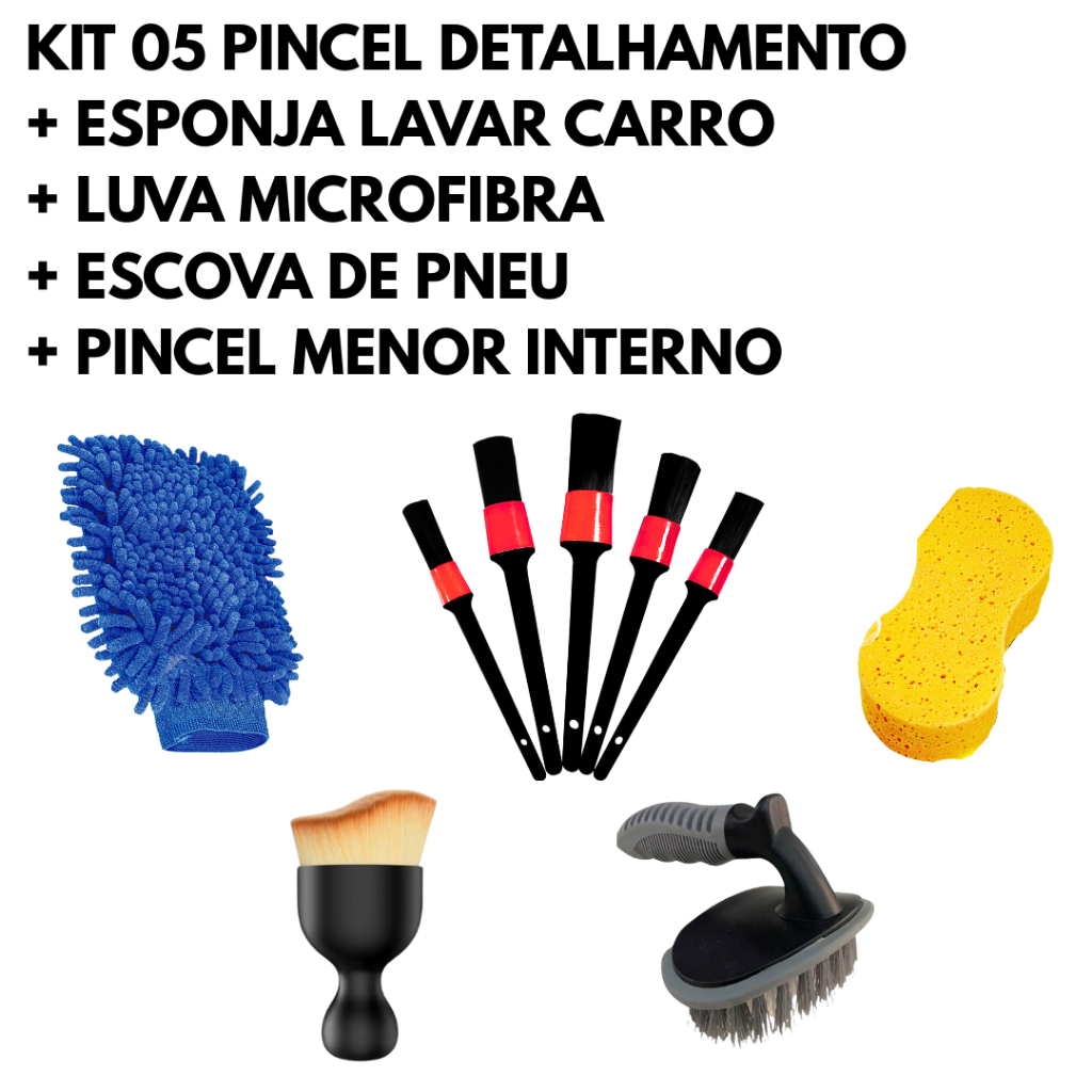 Kit 05 Pincel Automotivo Detalhamento Luva Flanela 30x40 cm Microfibra Limpeza Lavagem de Carro