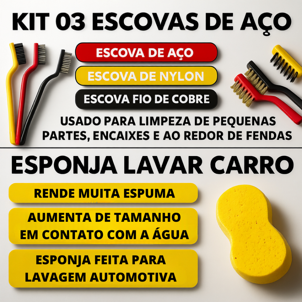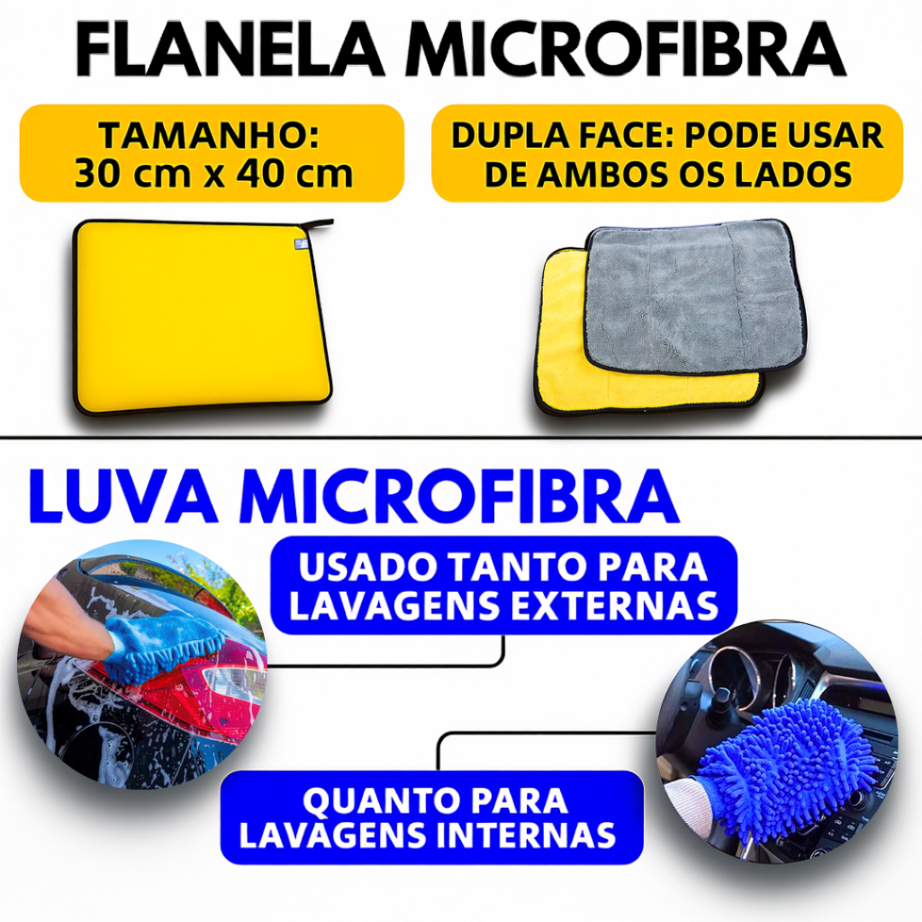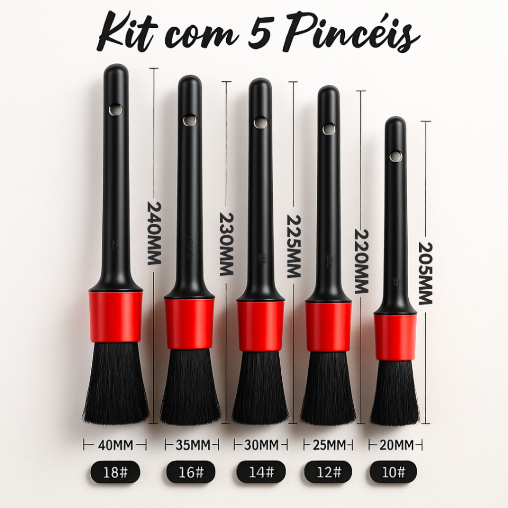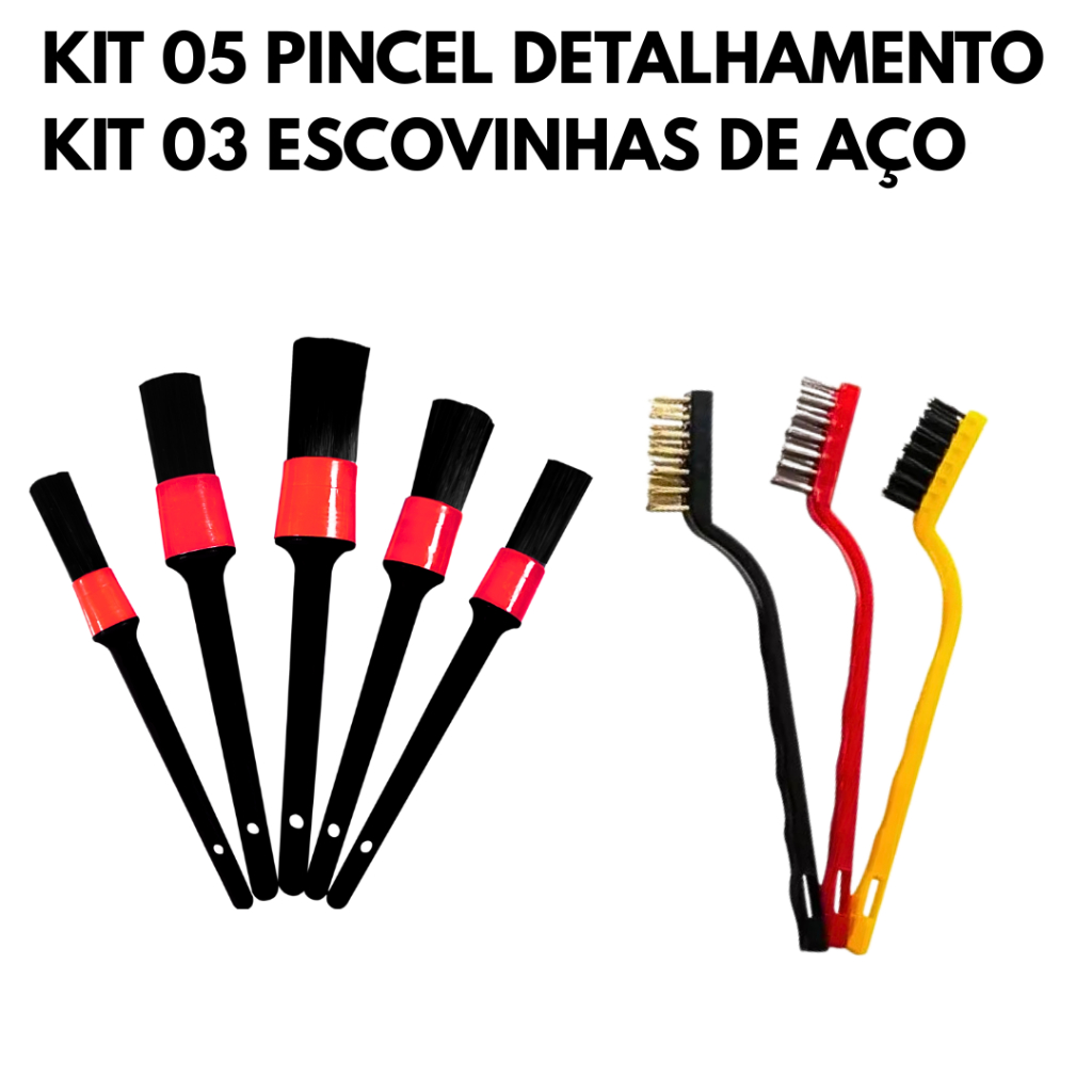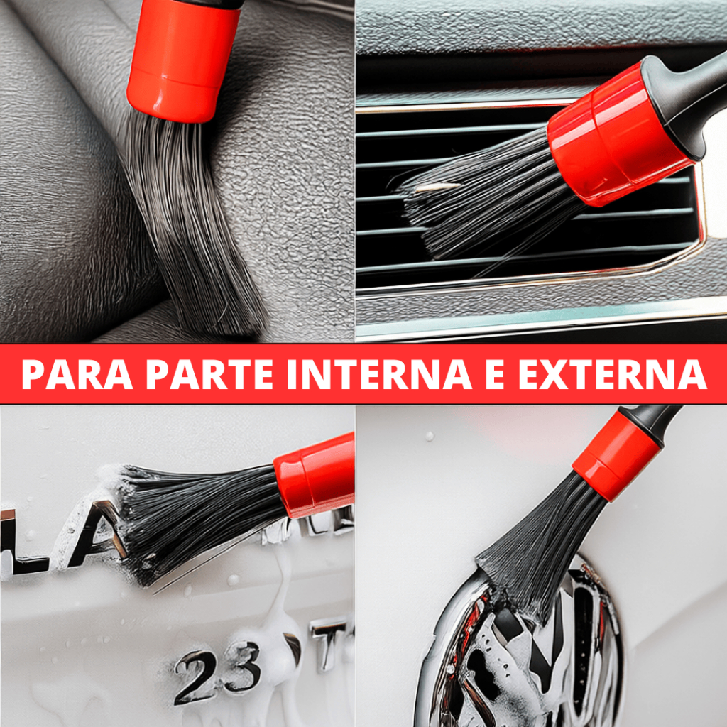 Kit 05 Pincel Automotivo Detalhamento Luva Flanela 30x40 cm Microfibra Limpeza Lavagem de Carro