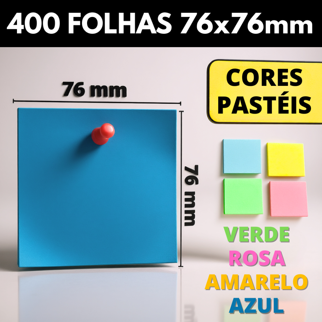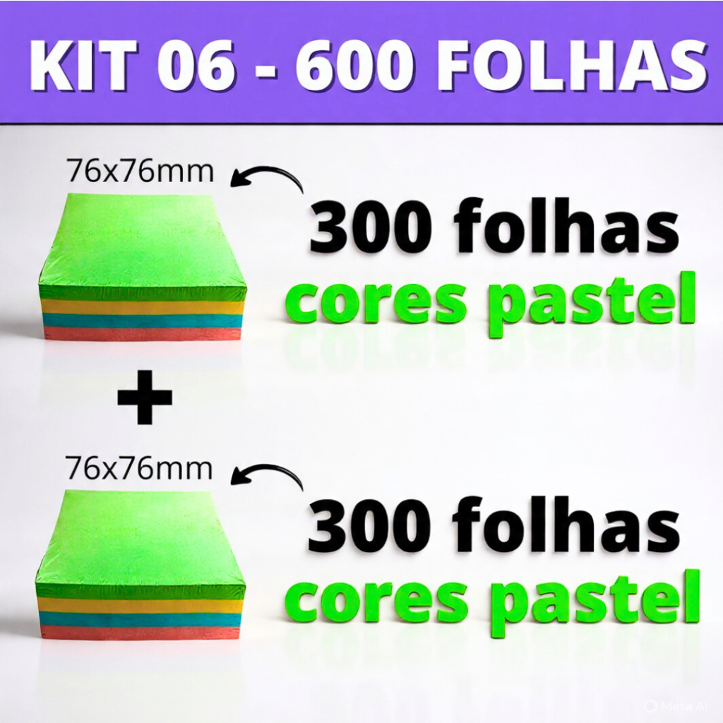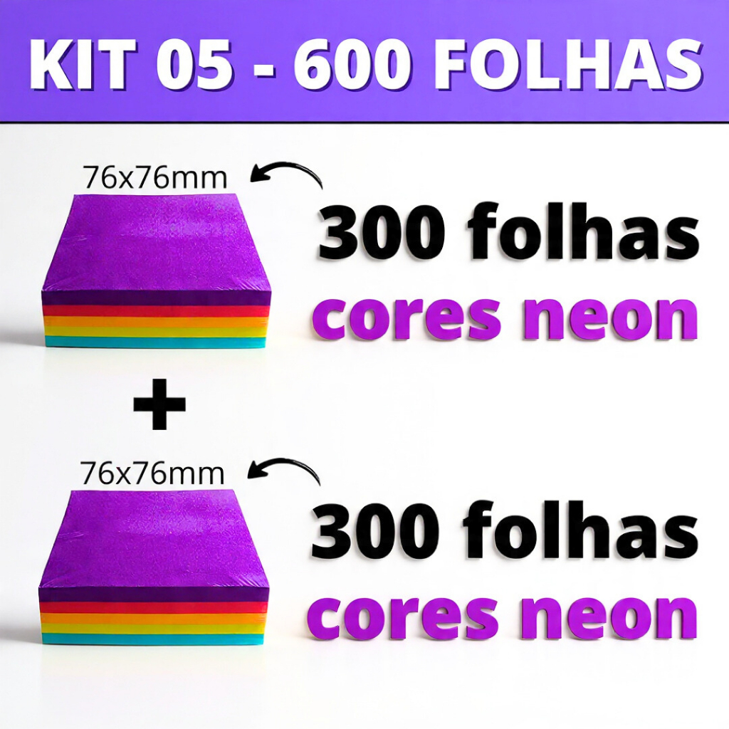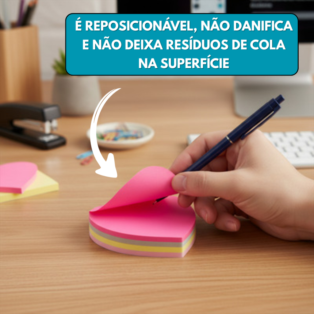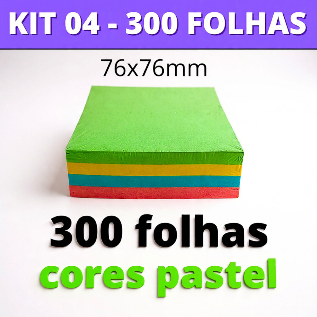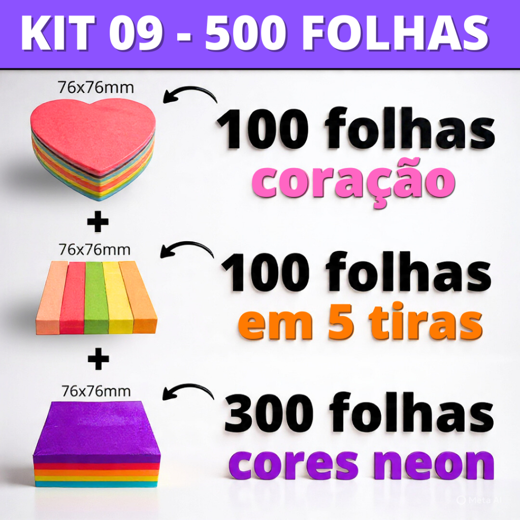 Kit Post it Até 800 Folhas Bloco de Notas Adesivo 50x50mm ou 76x76mm Colorido Pastel Neon Coração Sticks