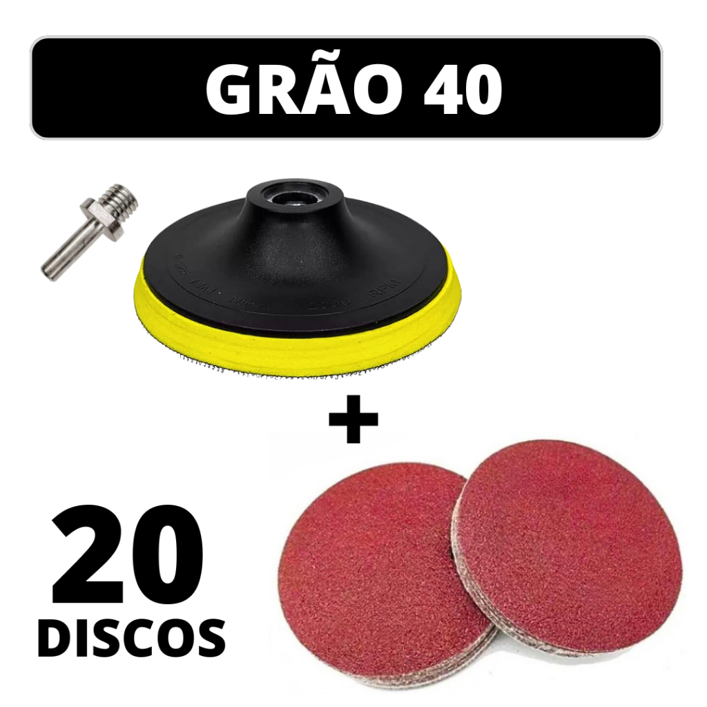 Kit Base Suporte 125mm com Adaptador M14 + 20 Lixas Sem Furos Com Velcro 5" Furadeira Esmerilhadeira