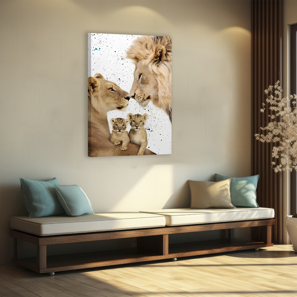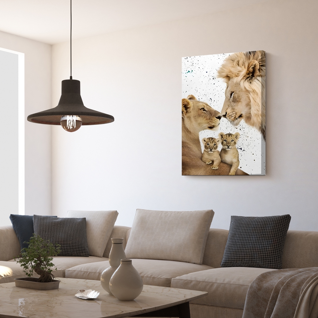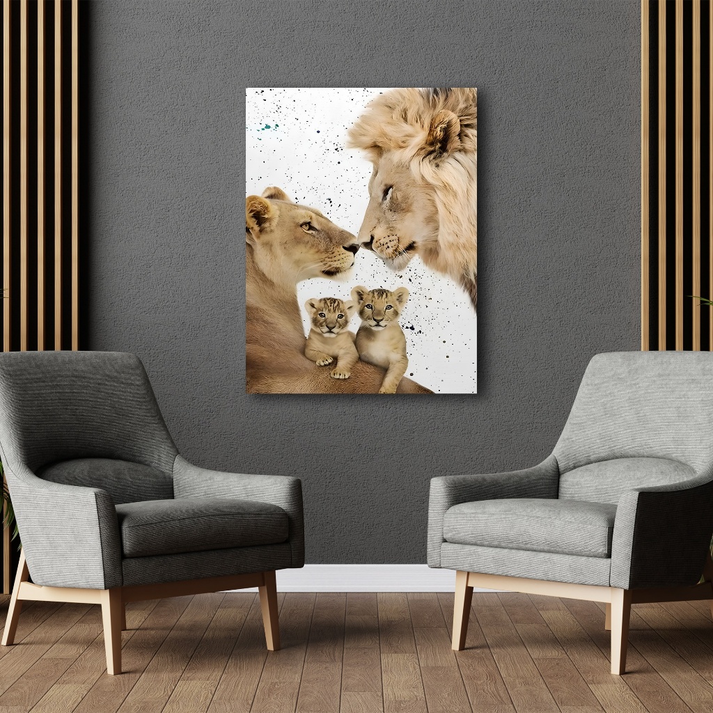 Quadro decorativo em tela grande leão filhote família para sala quarto escritório e hall de entrada