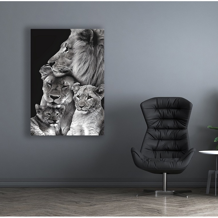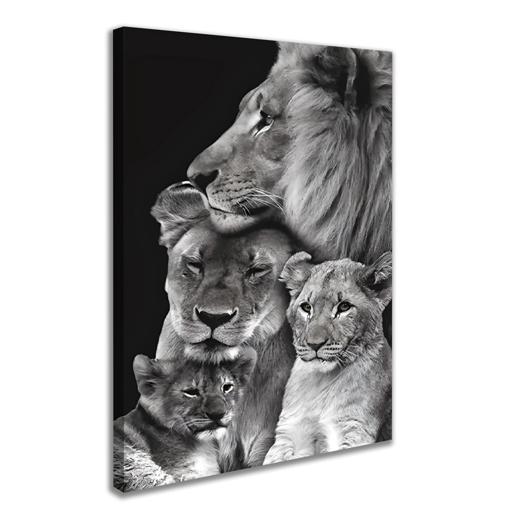 Quadro Leão Grande Casal Família 2 Filhotes Decorativo Canva