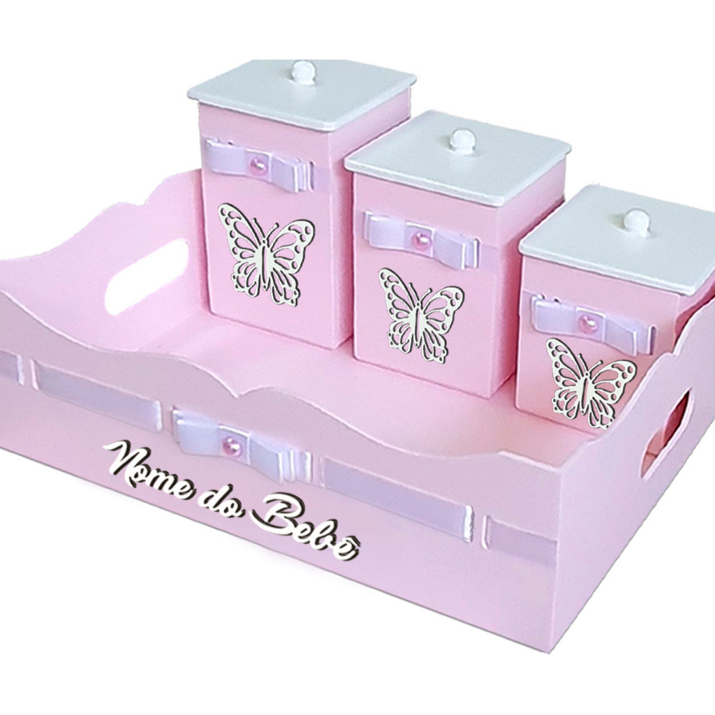 Kit de Higiene para Bebê Menina Rosa Borboleta Personalizado com nome