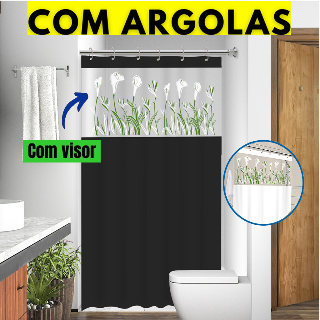 Cortina Box de Banheiro Luxo Moderna Antimofo Impermeável c/ Visor