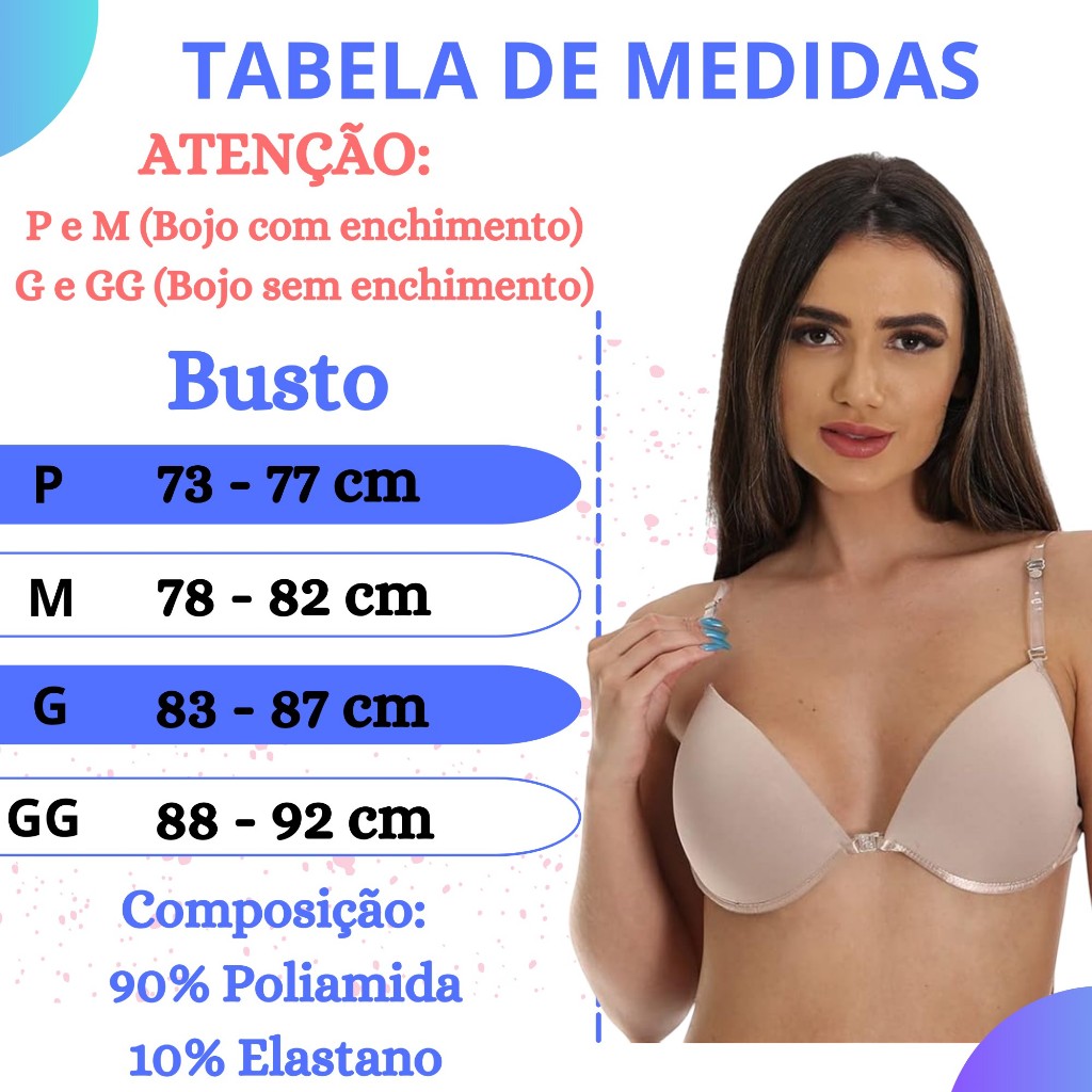 Sutiã Alça de Silicone com Bojo Fecha na Frente Soutien Push Up Costa Nua Laluju Lingerie