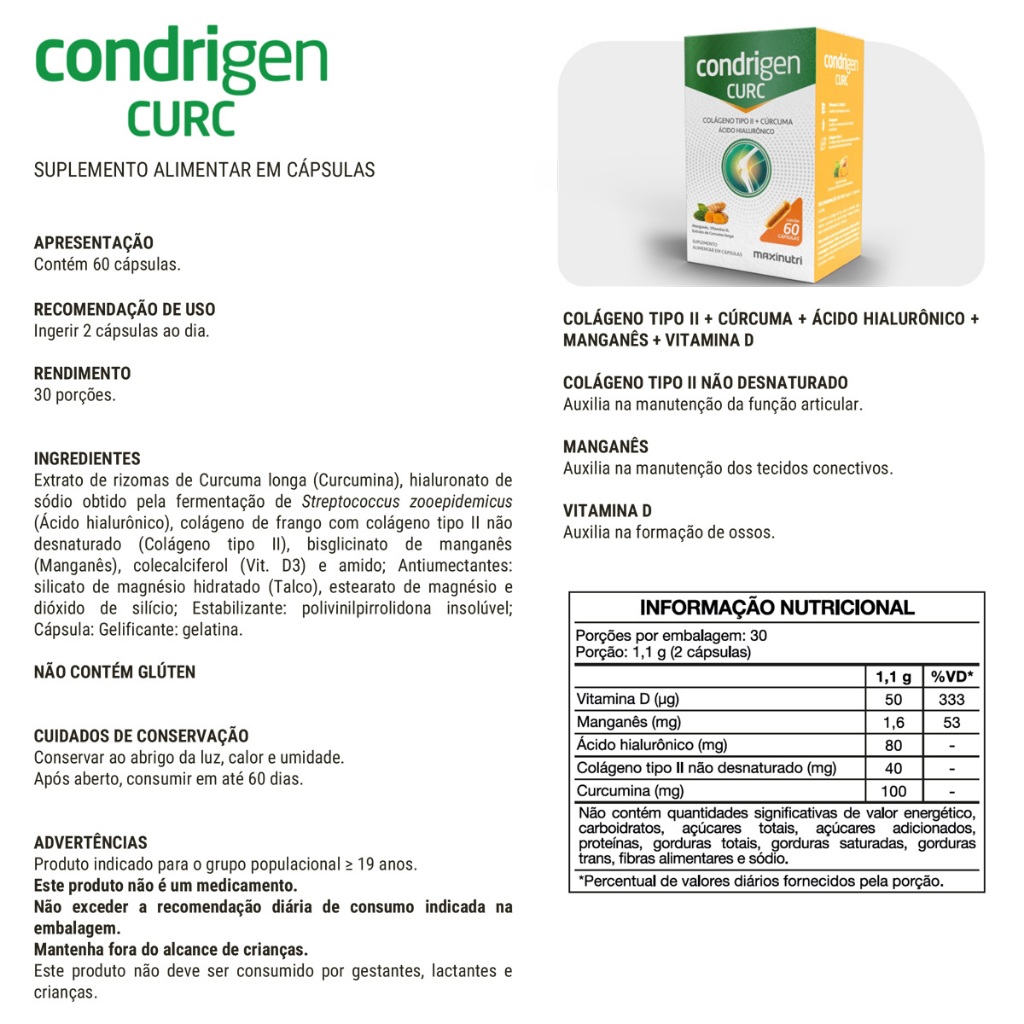Condrigen Curc Colágeno Tipo 2 + Cúrcuma 60 Cáps Maxinutri