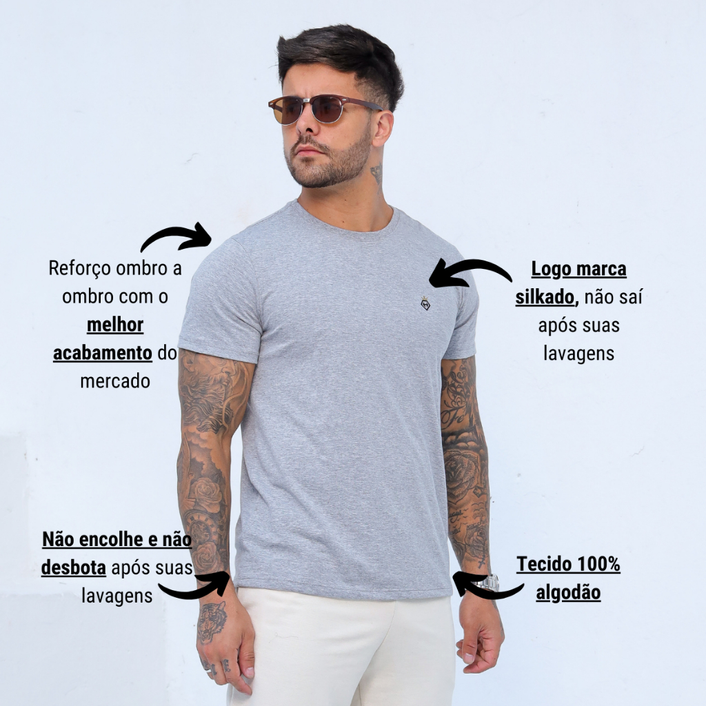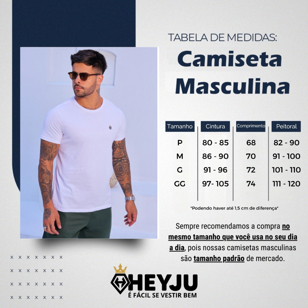 Camiseta Masculina Algodão Básica 30.1 Lisa Original Heyju