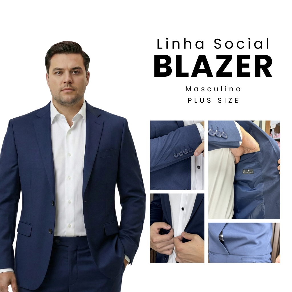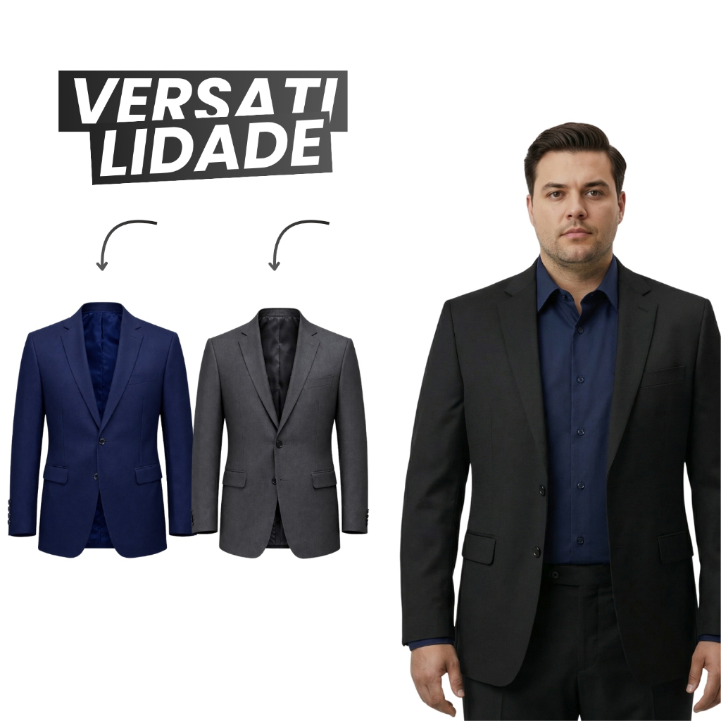 Blazer Paleto Masculino Plus Social Luxo Premium Italiano Microfibra Elastano Terno Classico Moderno Corte Italiano
