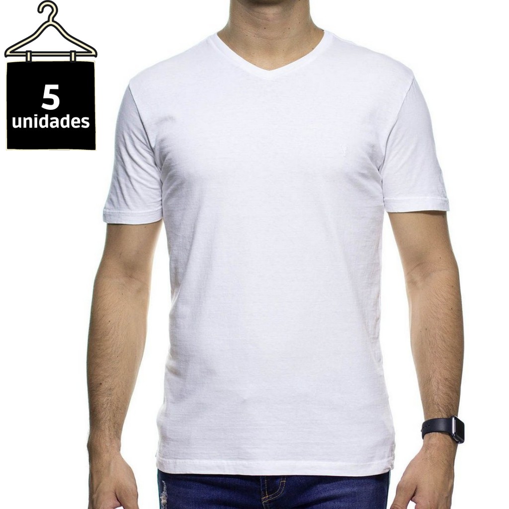 Kit 5 Camisetas Gola V Brancas Lisa Camisa Malha 100% Algodão