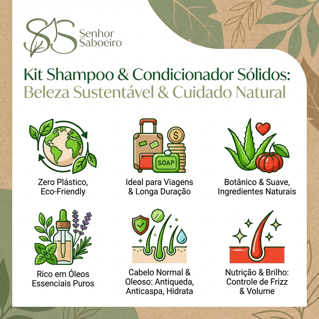 Kit Shampoo Sólido Aloe Vera e Condicionador Pitanga - Anti Queda Hidratação Intensa Cabelos Secos