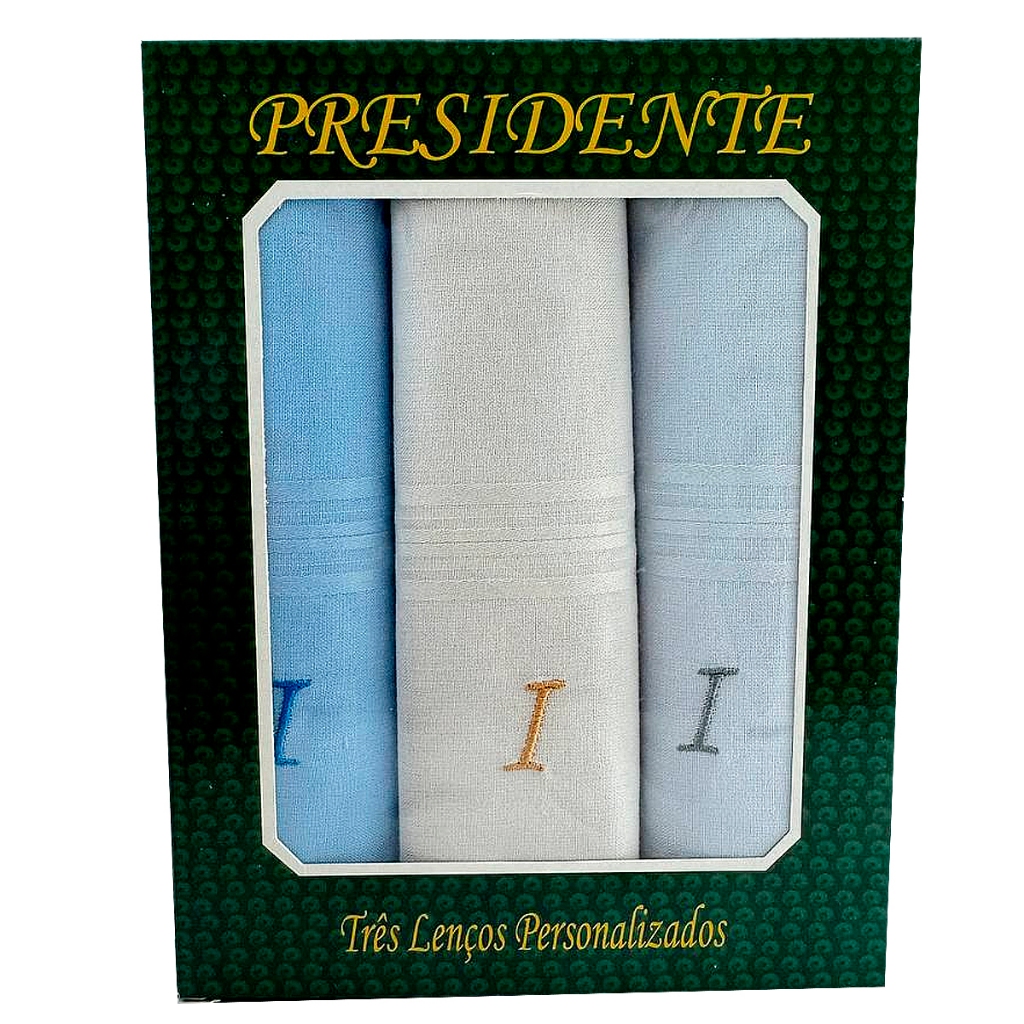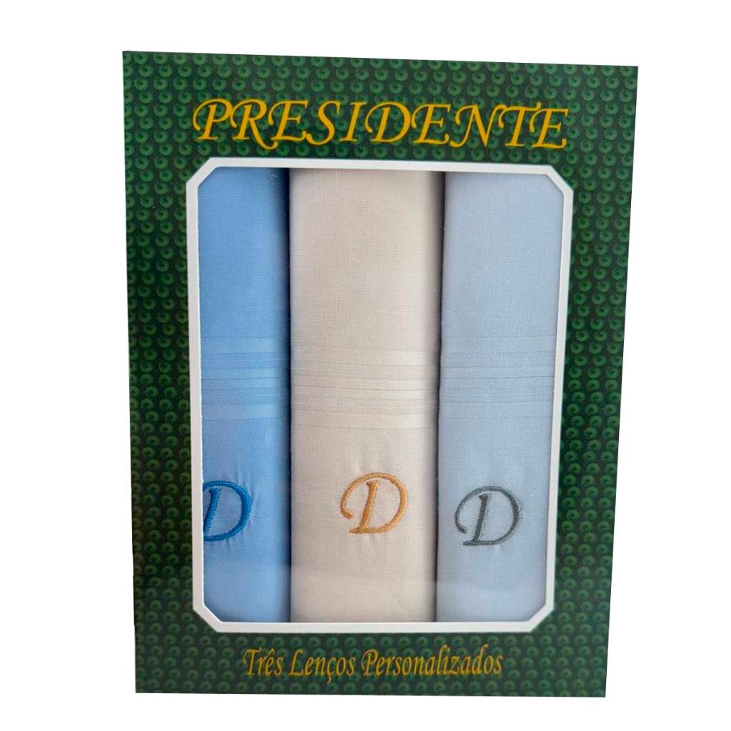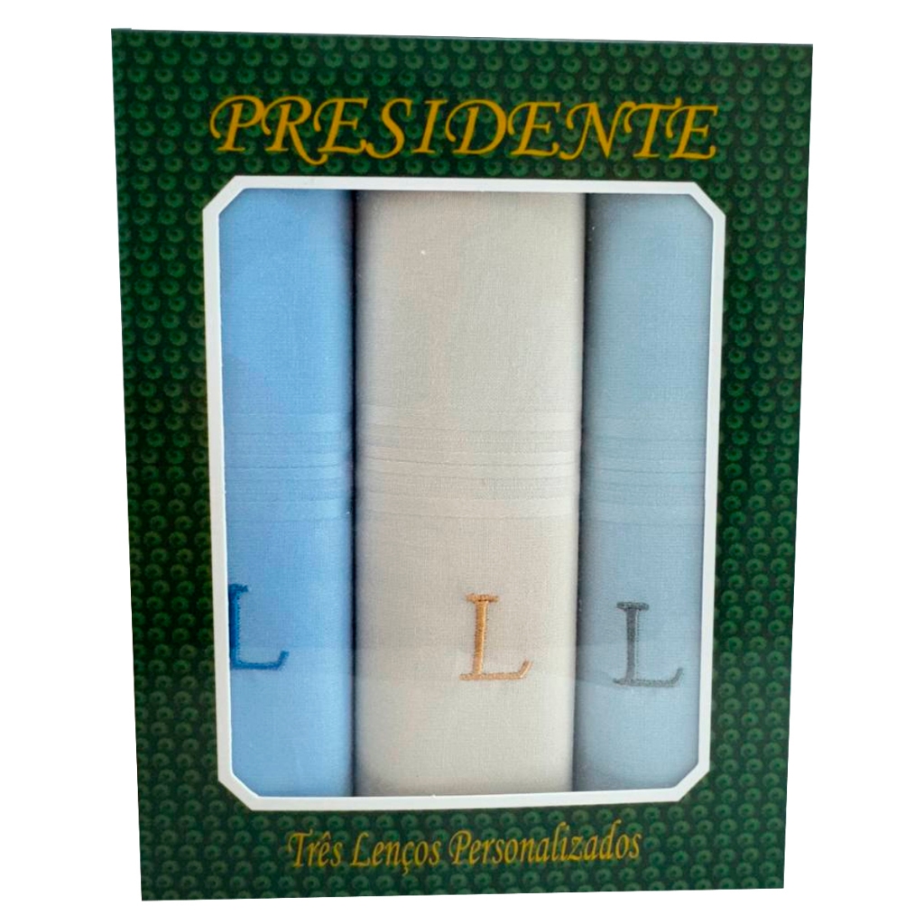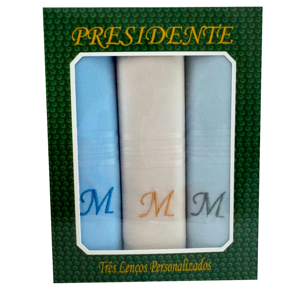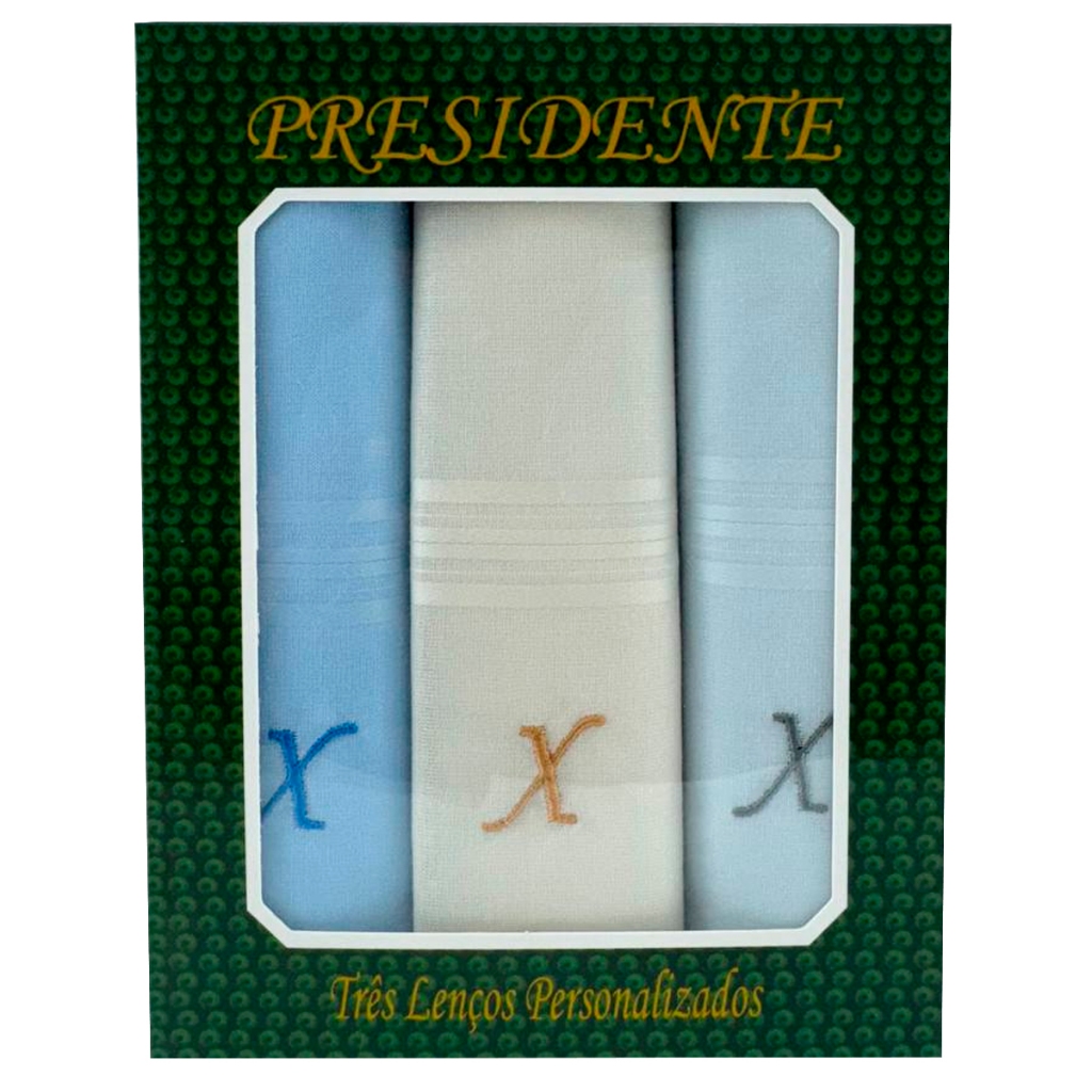 Lenços Com Letras Presidente De Bolso 41cm 100% Algodão - 3 Unidades