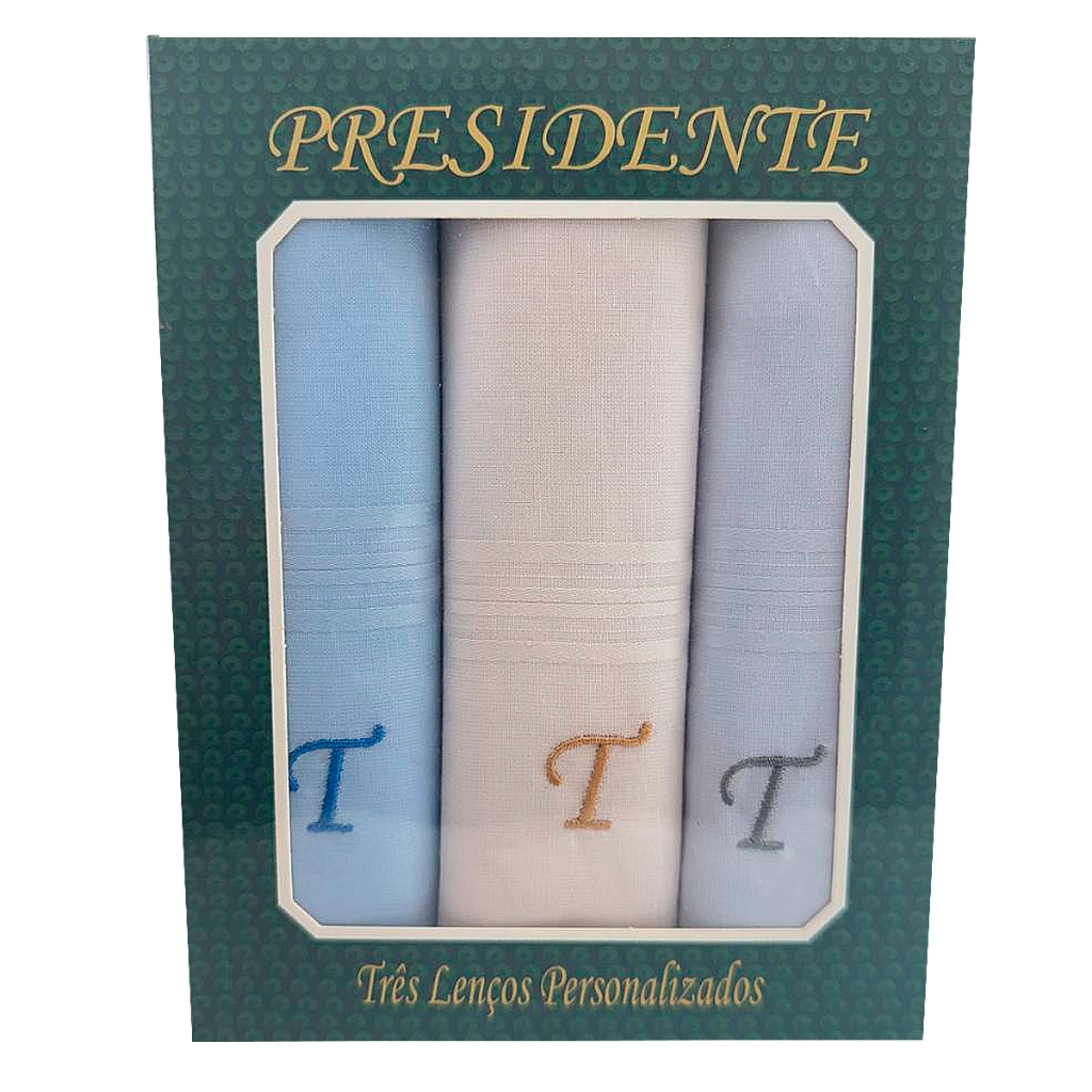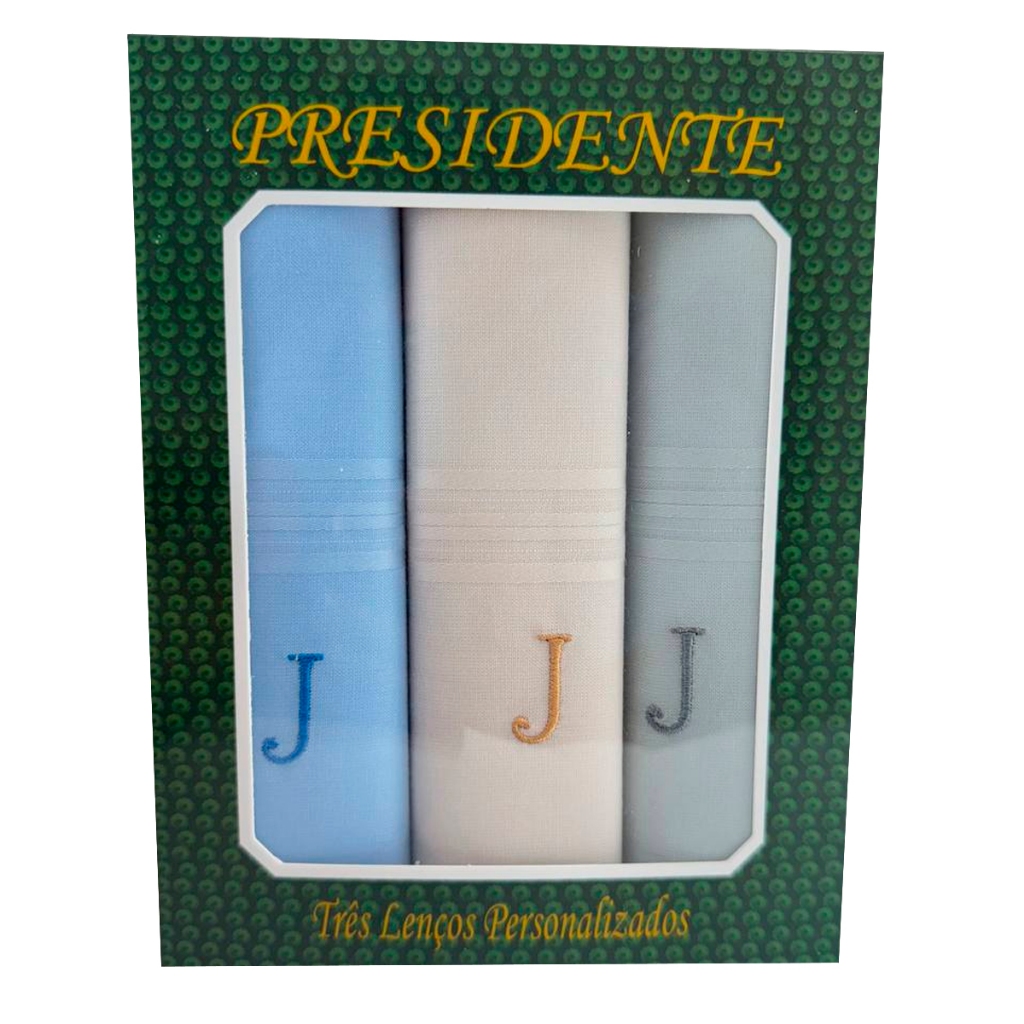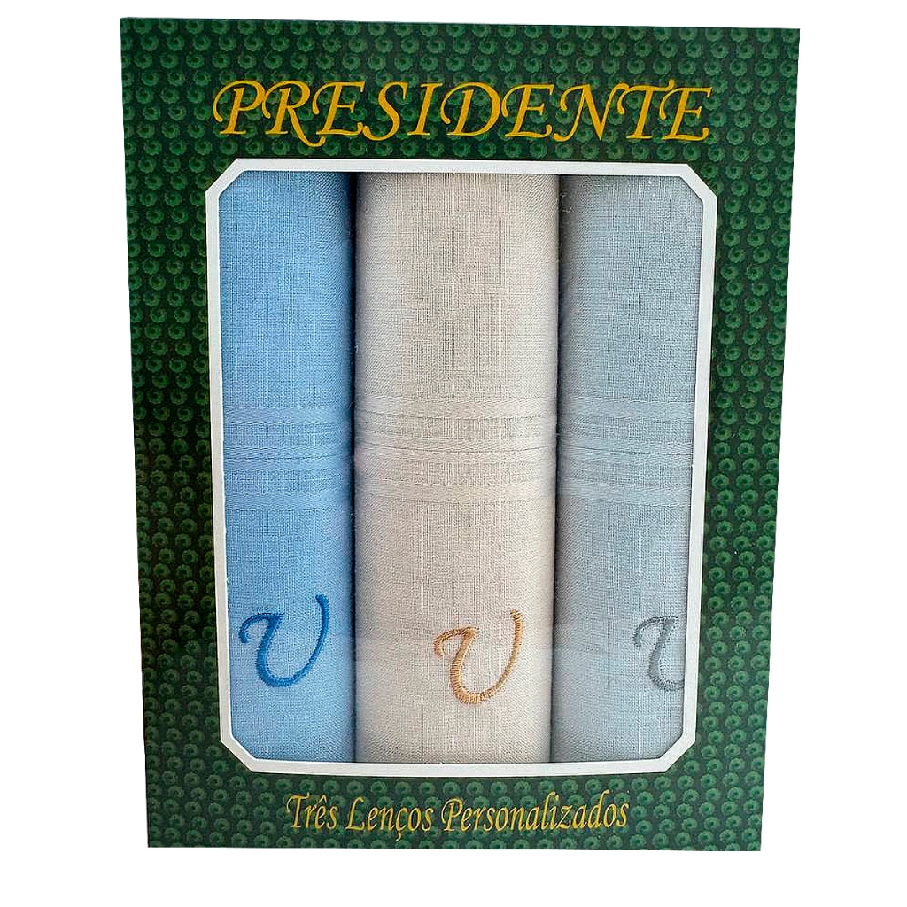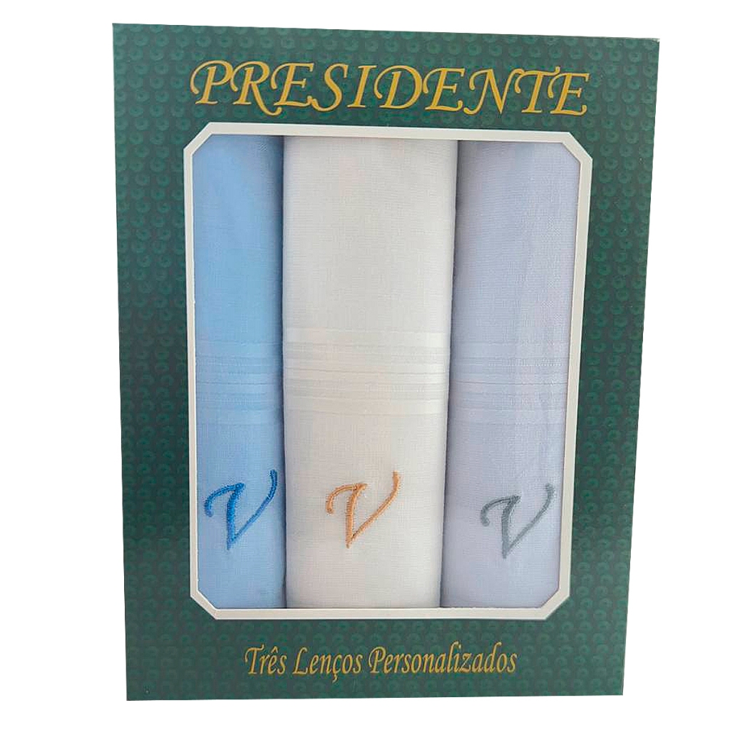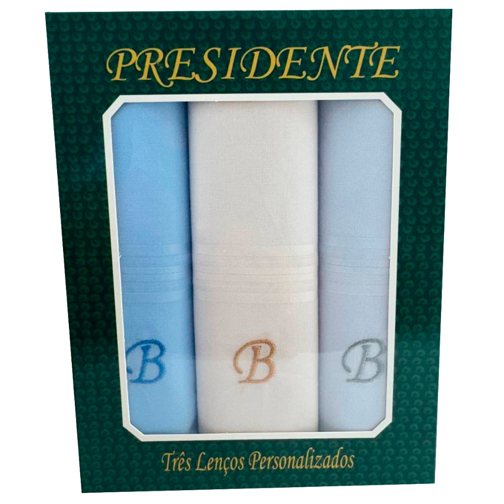Lenços Com Letras Presidente De Bolso 41cm 100% Algodão - 3 Unidades