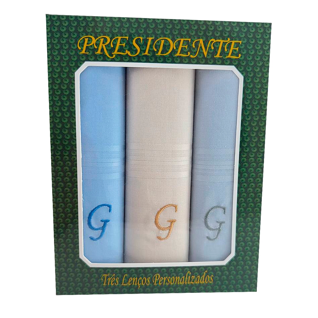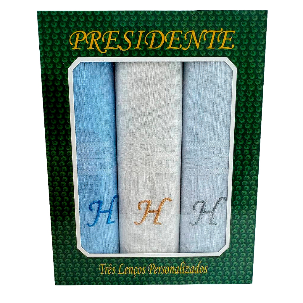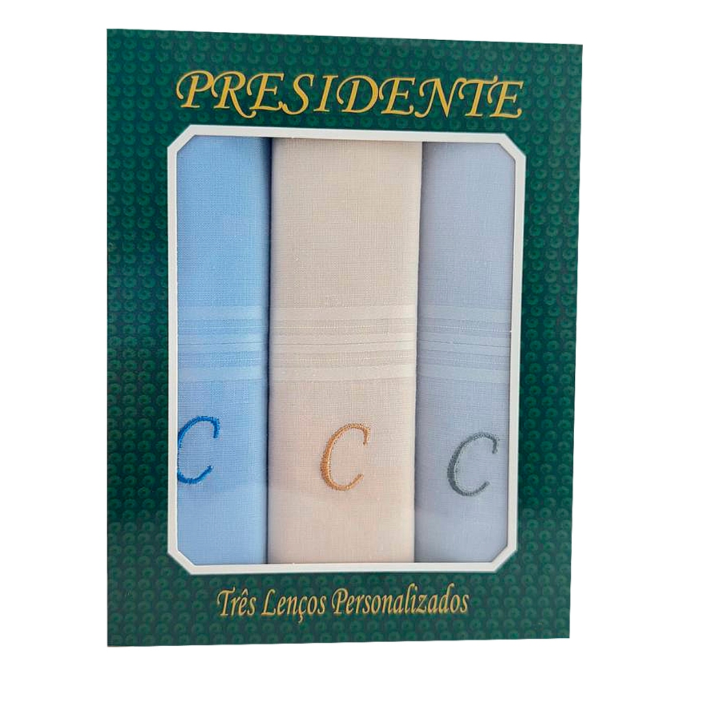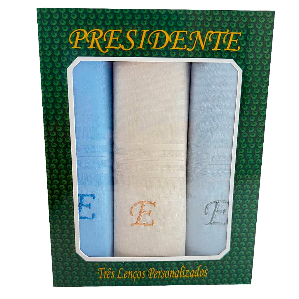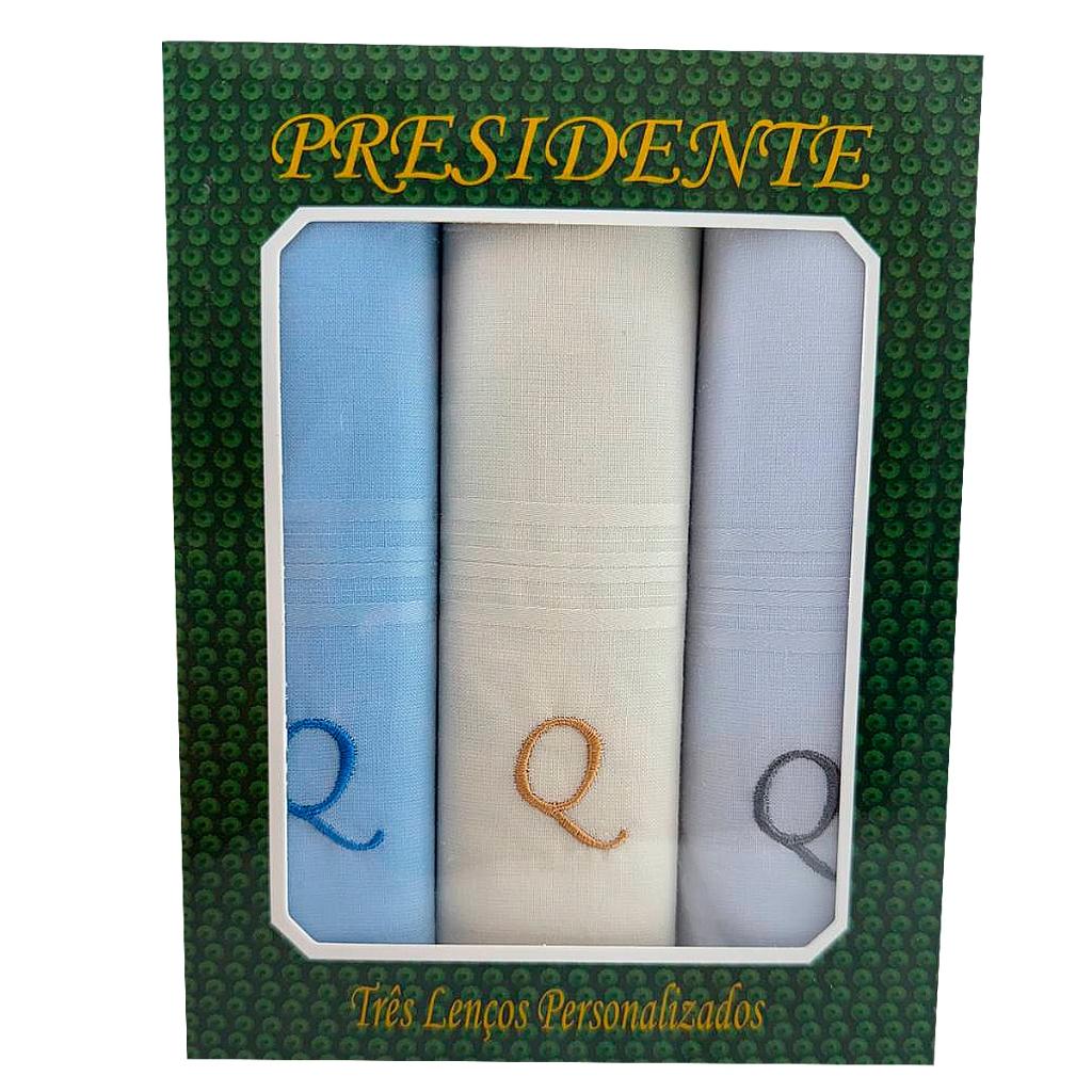 Lenços Com Letras Presidente De Bolso 41cm 100% Algodão - 3 Unidades