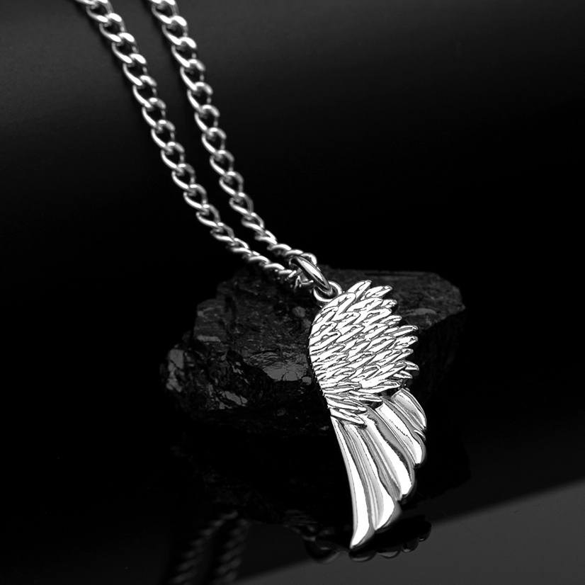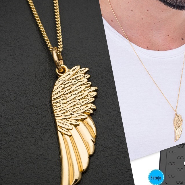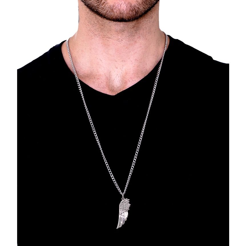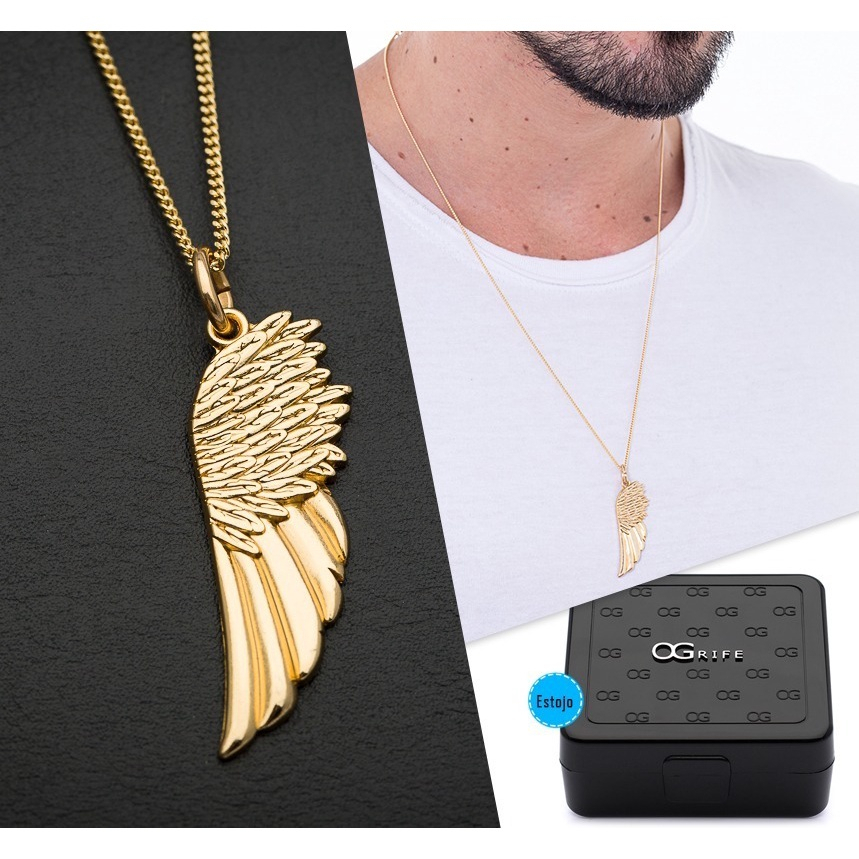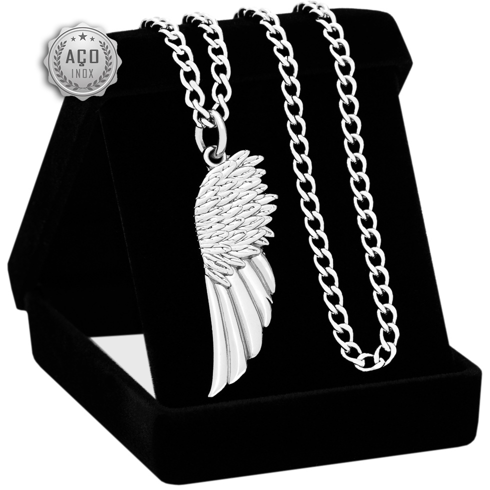 Colar Masculino com Pingente Asa Pena Corrente Grumet Aço Inox 3mm Cor Prata Dourado Não Escurece