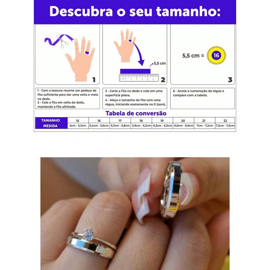 Par de Aliança de Namoro Casamento Brilhante Prata Diamantada e Chanfrada + Anel Solitário fina sem Caixinha