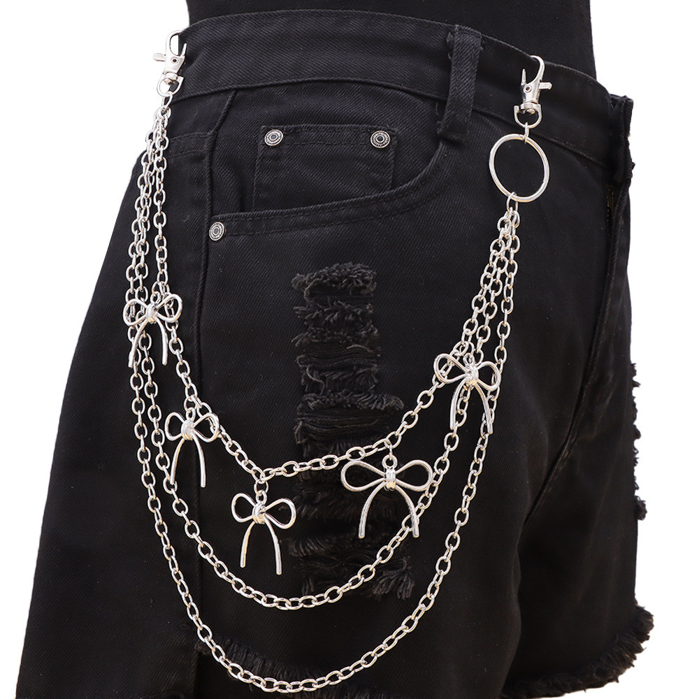 Corrente De Calças Com Pingente De Laço De Estrela Simples Para Mulheres Correntes Multicamadas De Hip-hop Acessórios De