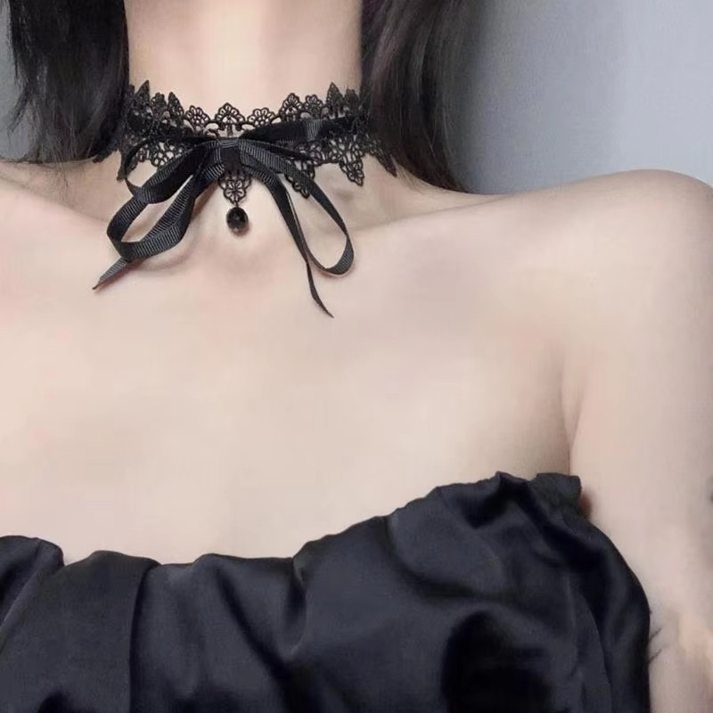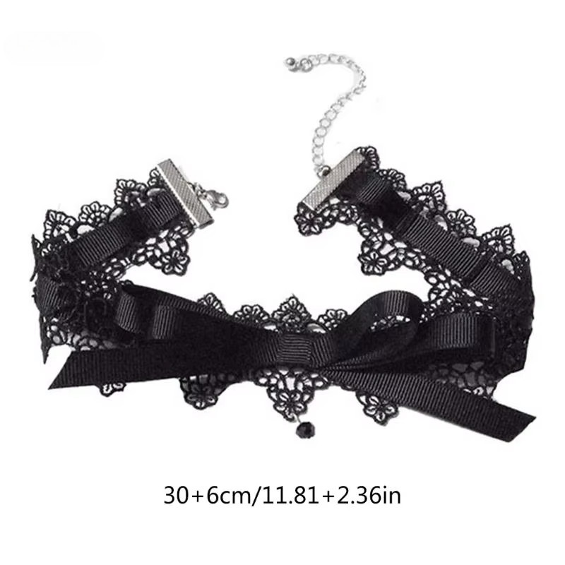 Elegante Preto Renda Bowkot Gargantilha Colares Gótico Vintage Curto Corrente Colar Moda Jóias
