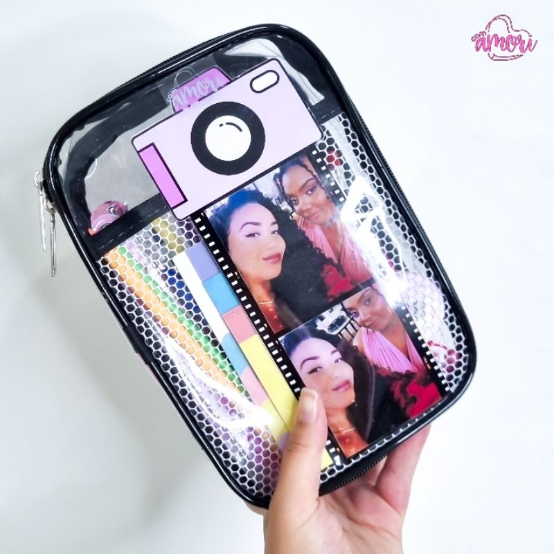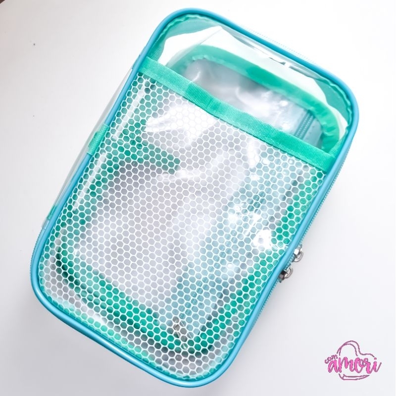 Estojo Box Transparente Com Compartimentos Internos para Lápis Canetas Papelaria