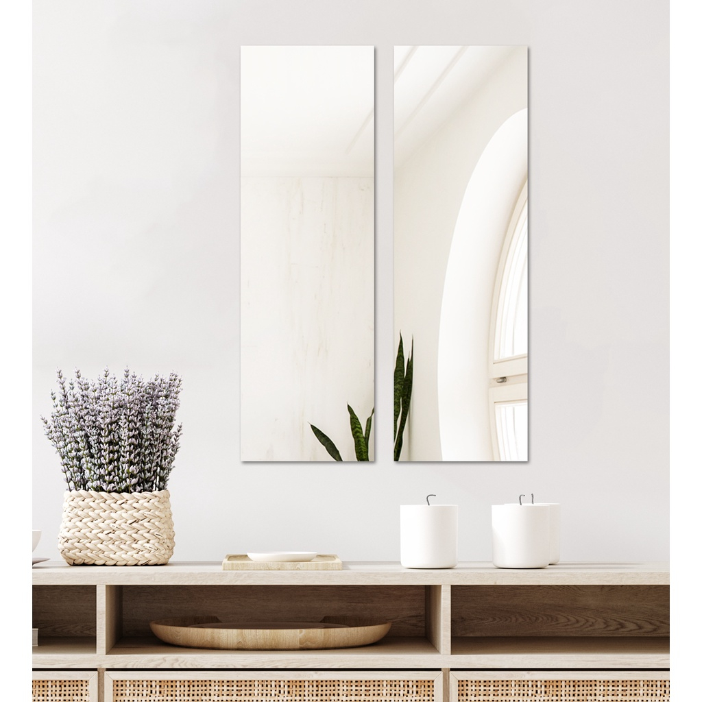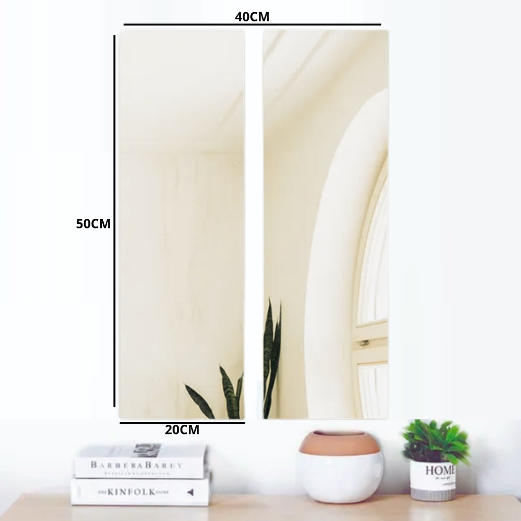 Kit 2 espelhos decorativo de 50 x 20 cm, ideal para quarto banheiro e sala. dupla face para fixação.