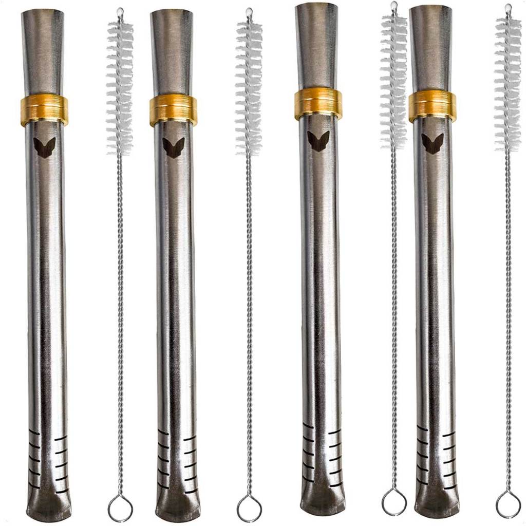 Bomba de Terere Filete Chacal Inox 16cm Com Escova de Limpeza