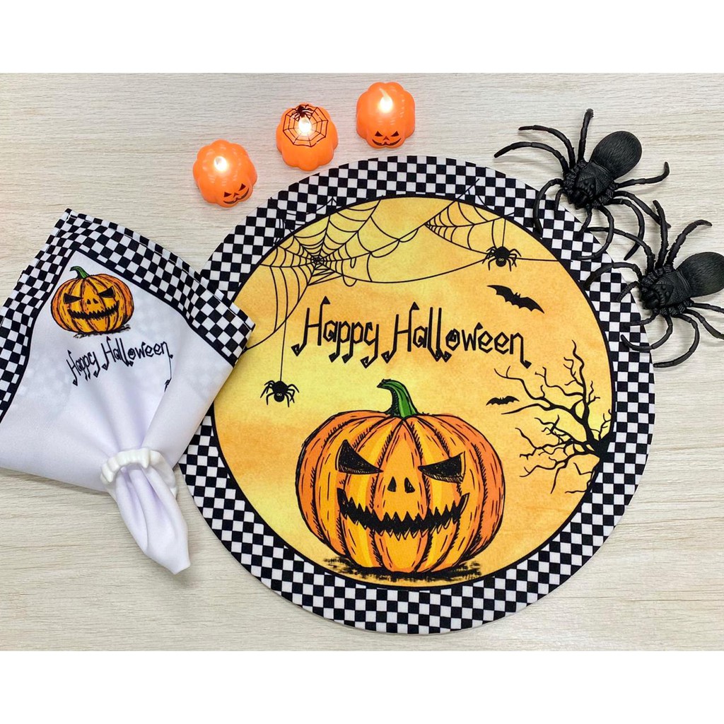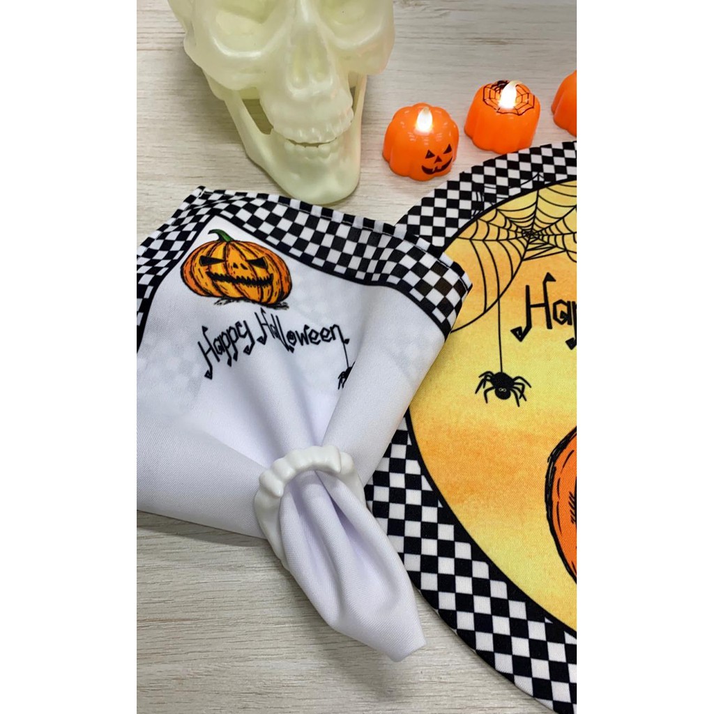 Kit Halloween 1 Capa + 1 Guardanapo + 1 Porta Guardanapo BRINDE DENTADURA Sousplat Supla Oferta