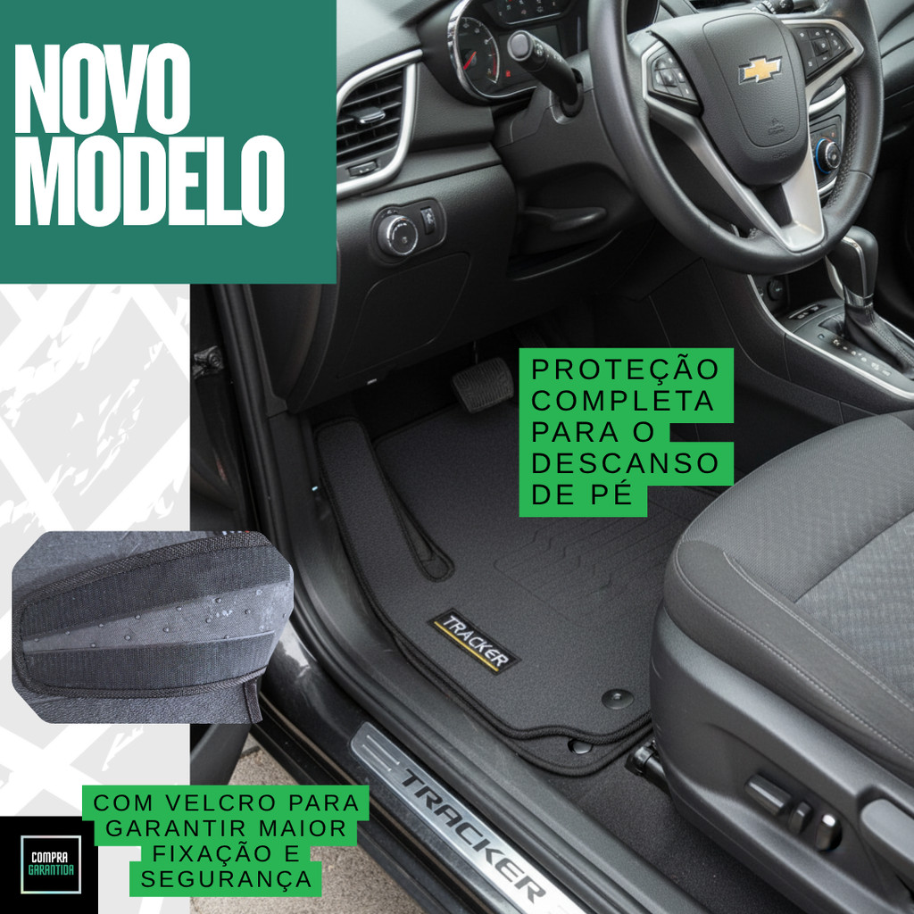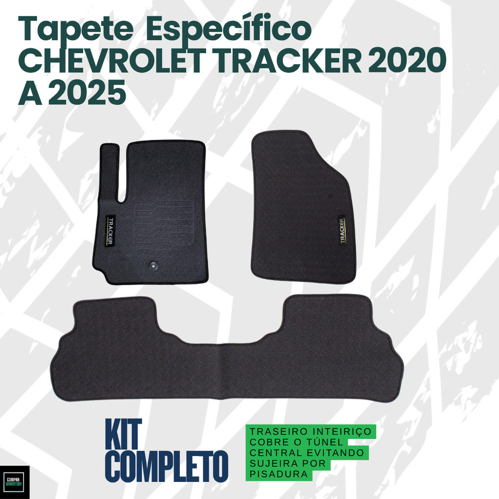 Jogo Tapete Emborrachado Chevrolet Tracker Anos 2020 Á 2025 Com Descanso Pé Impermeável Logo Bordado