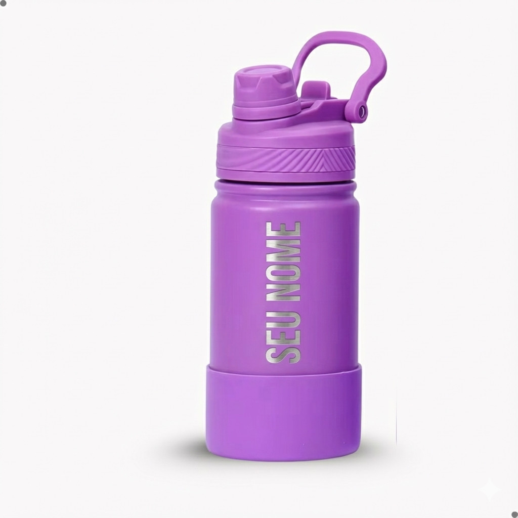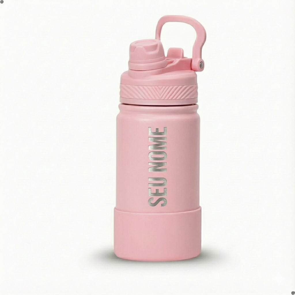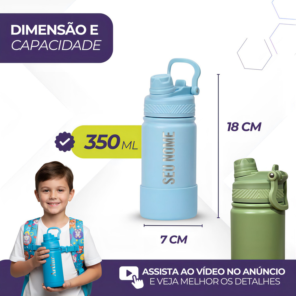 Garrafa Térmica Personalizada Inox 350ml Com Canudo Escolar com Base Proteção em Silicone