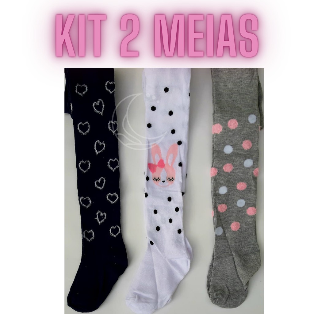2 Meia Calça Grossa Estampada - Para Meninas - Lindas - Fio 80 - Envio de Estampas Sortidas - Bebê - Infantil - Juvenil