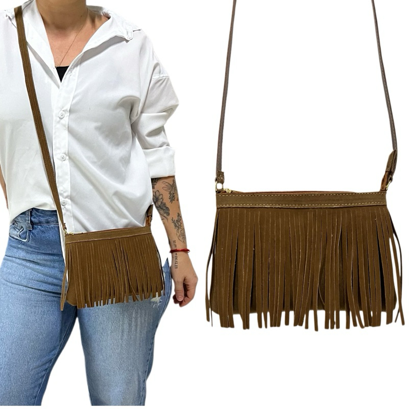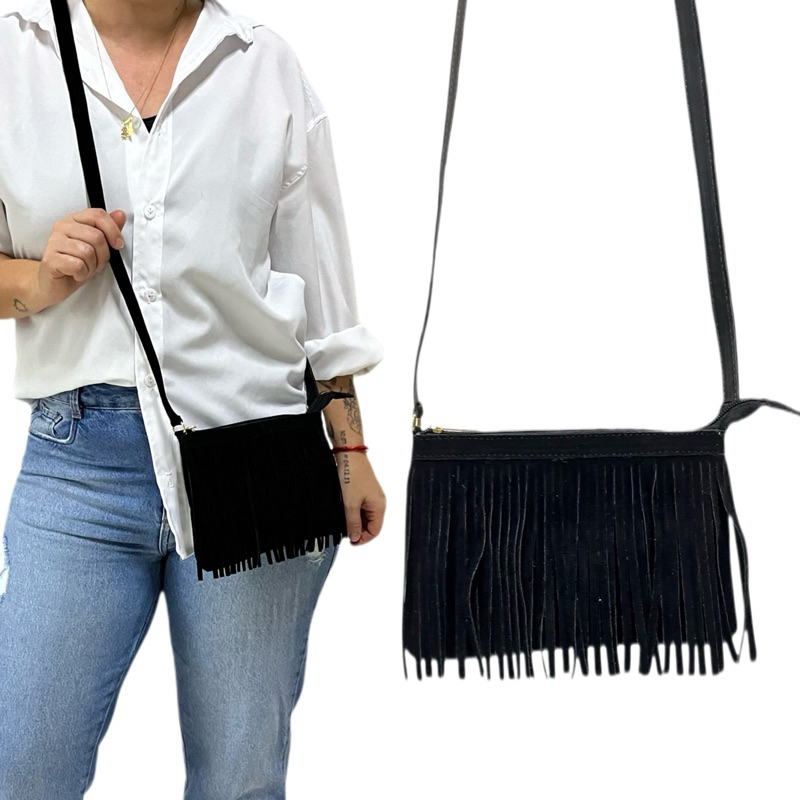 Bolsa Feminina com franja alça transversal estilo boho festa de peão de Barretos Boiadeira
