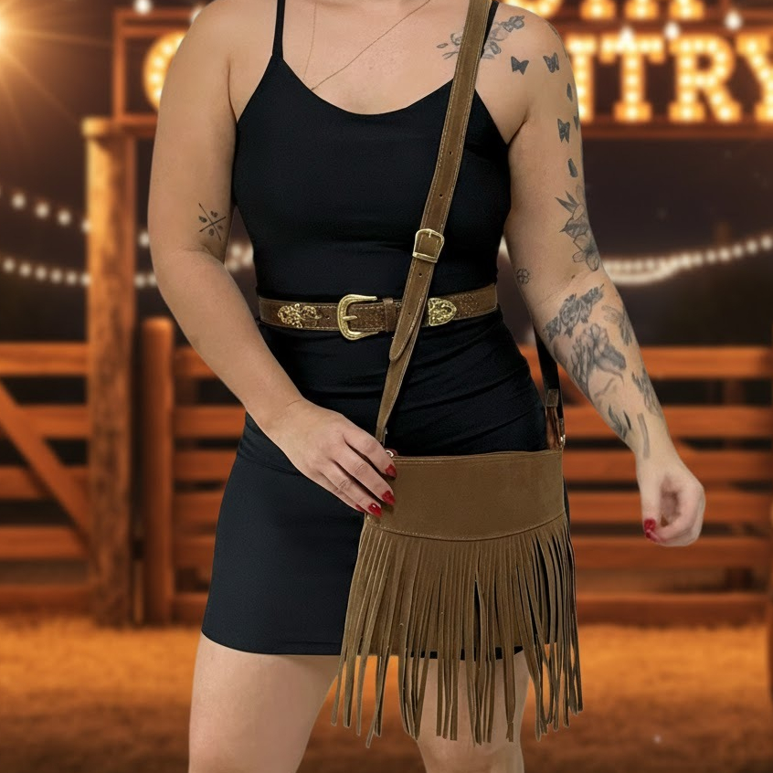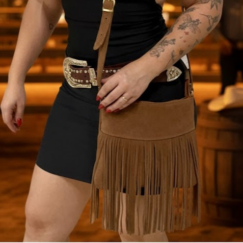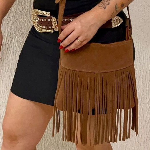 Bolsa Feminina de Franja estilo Boho Festa de Peão Barretos Couro Sintético
