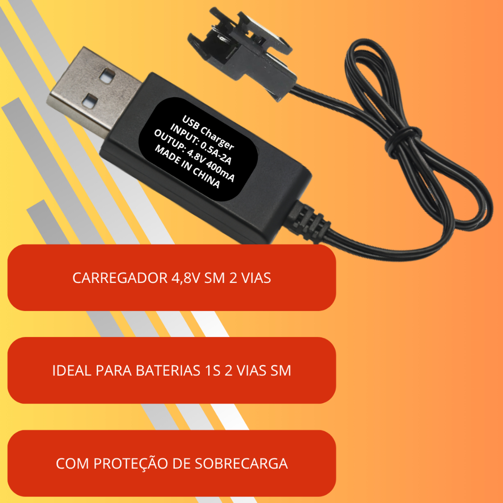 Carregador Bateria Drone Saída DC 4.8V 400mA P/ Brinquedos rc 1s 2s 3s Plug SM 2 Pinos /021
