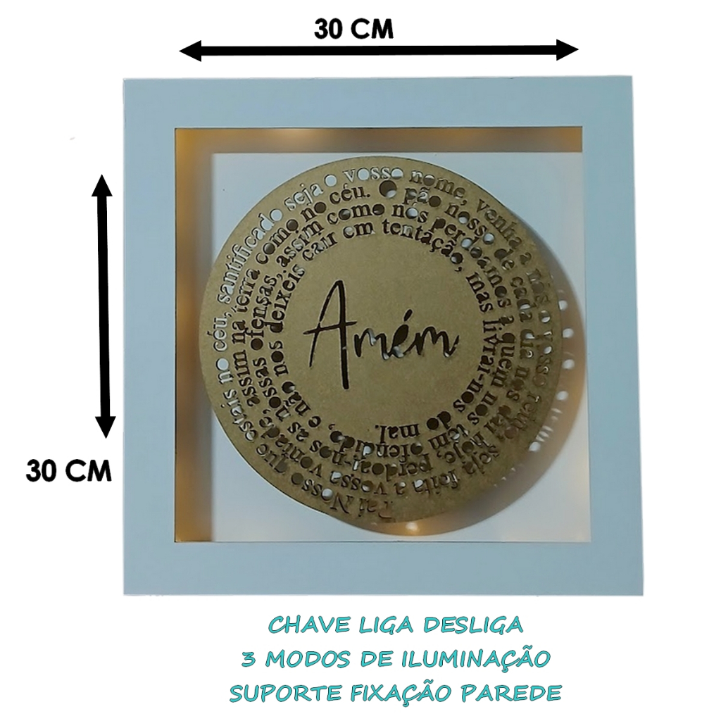 Quadro iluminado decoração enfeite religiosa capela oratorio led