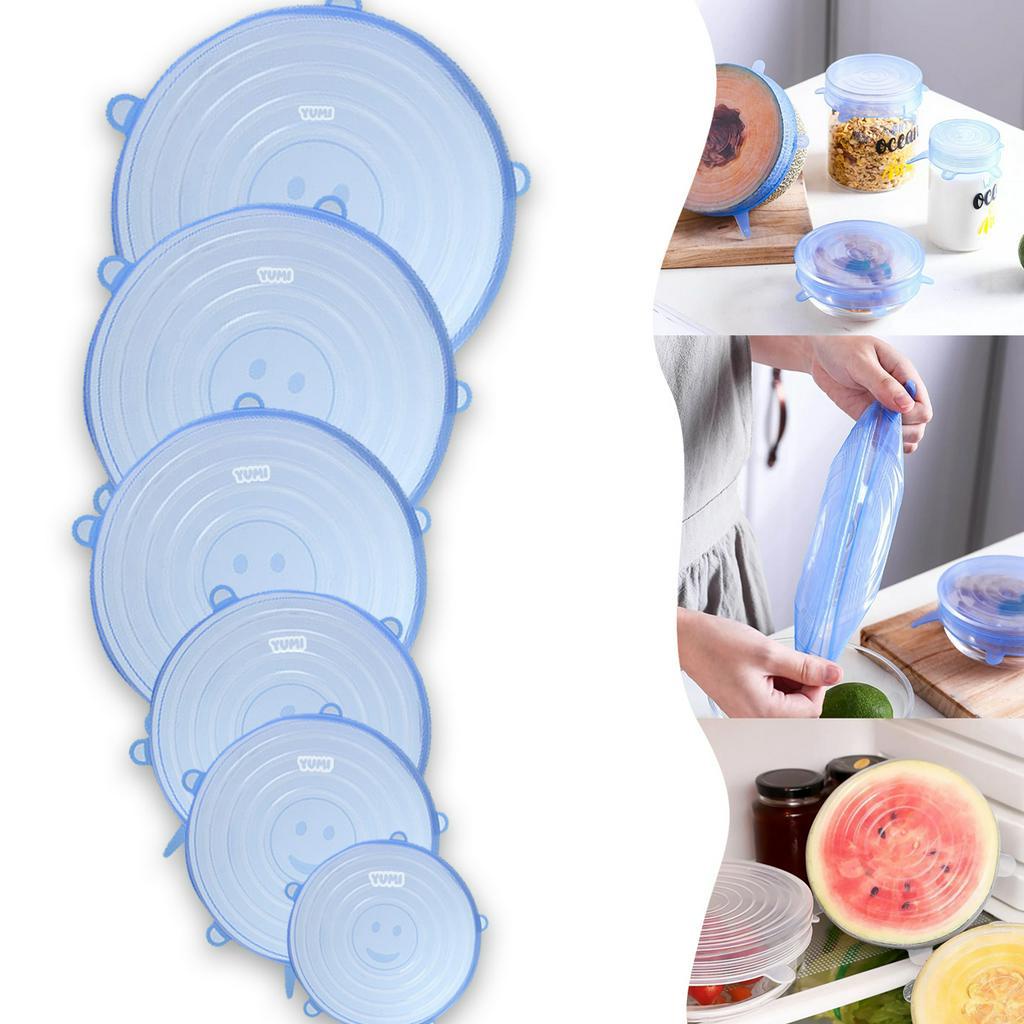 Kit 6 Tampas Panela Silicone Universal Reutilizável Elástica Tampas Silicone Cozinha Geladeira