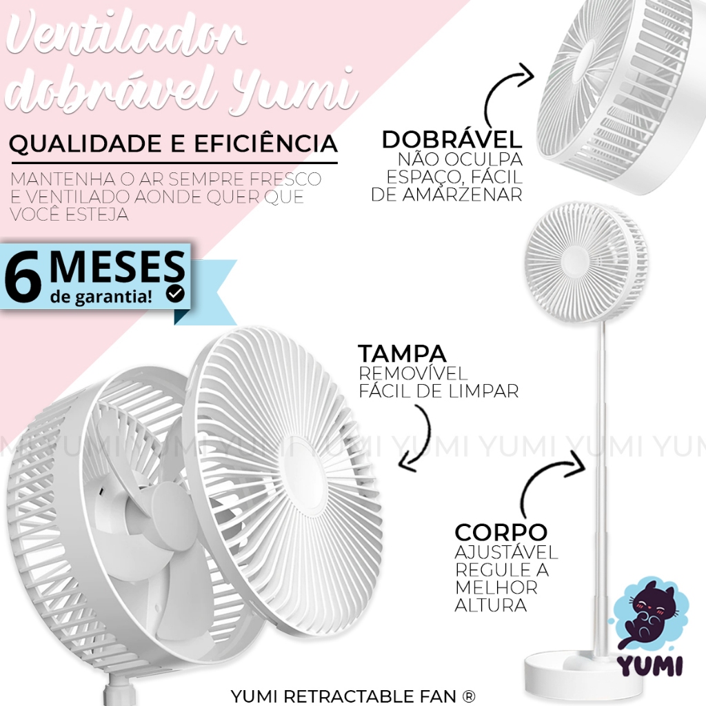 Ventilador Dobravel Portatil Bateria Recarregavel 7200mah Retrátil Y09 Premium