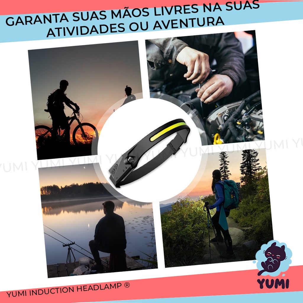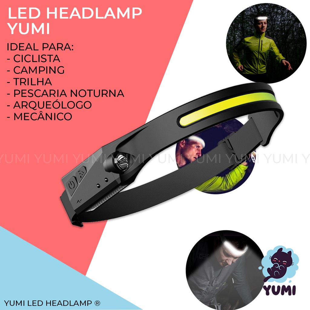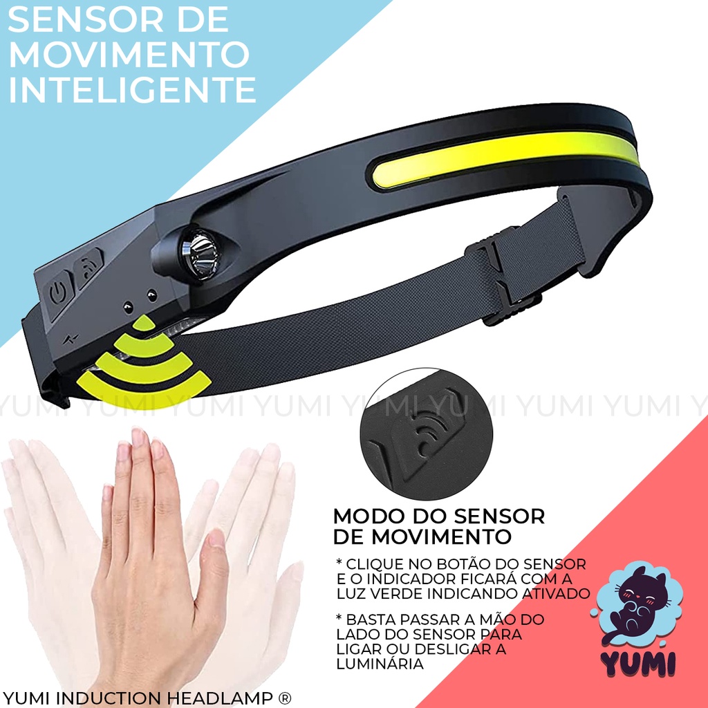 Lanterna de Cabeça Led COB Caminhada Pesca Ciclismo High Power + Sensor Indutívo + Lanterna Lateral