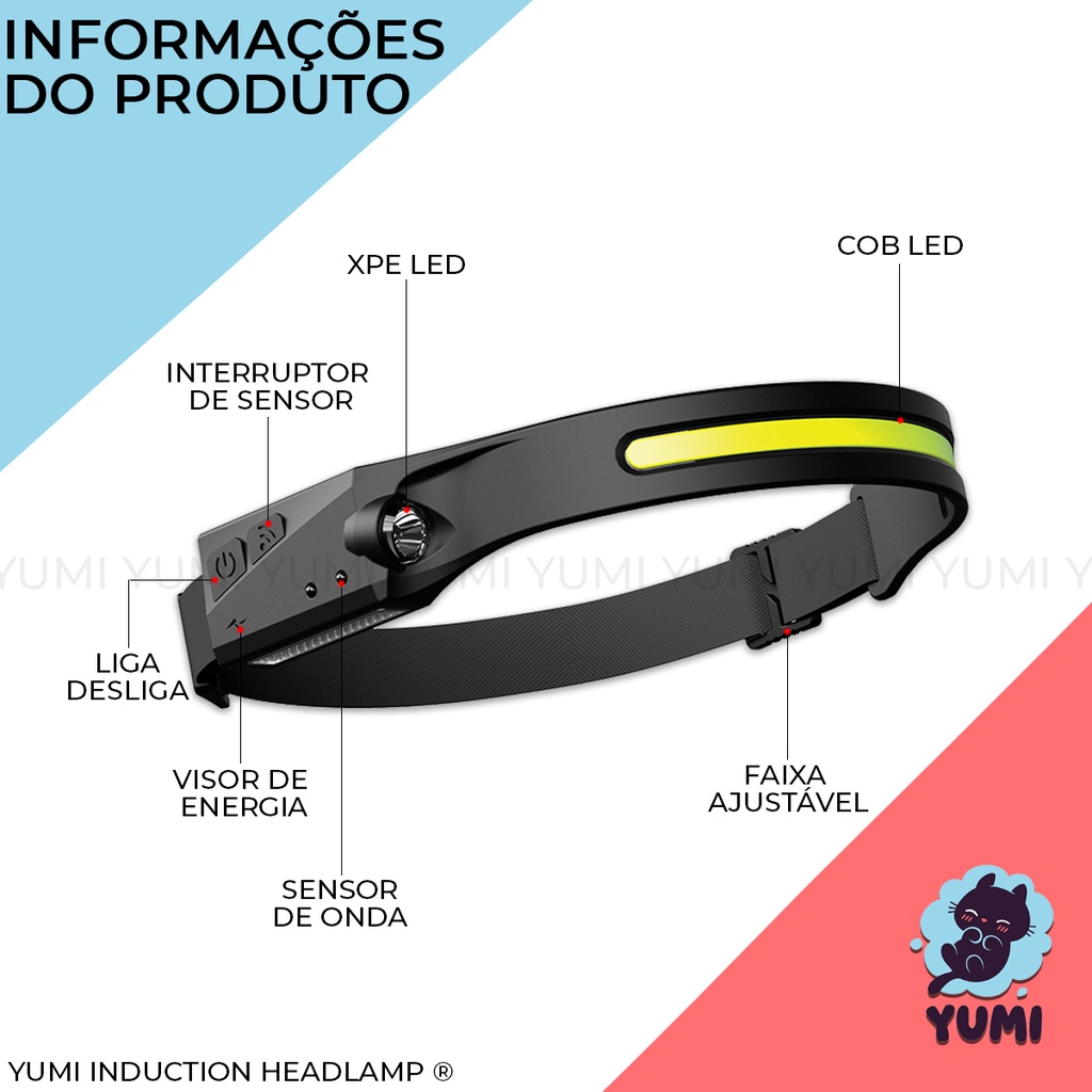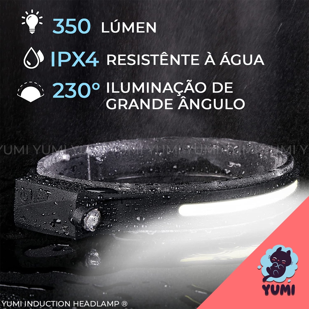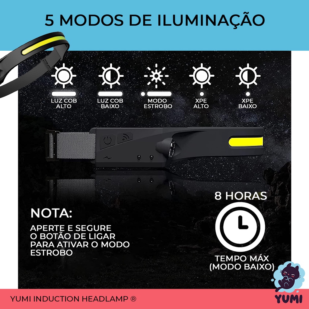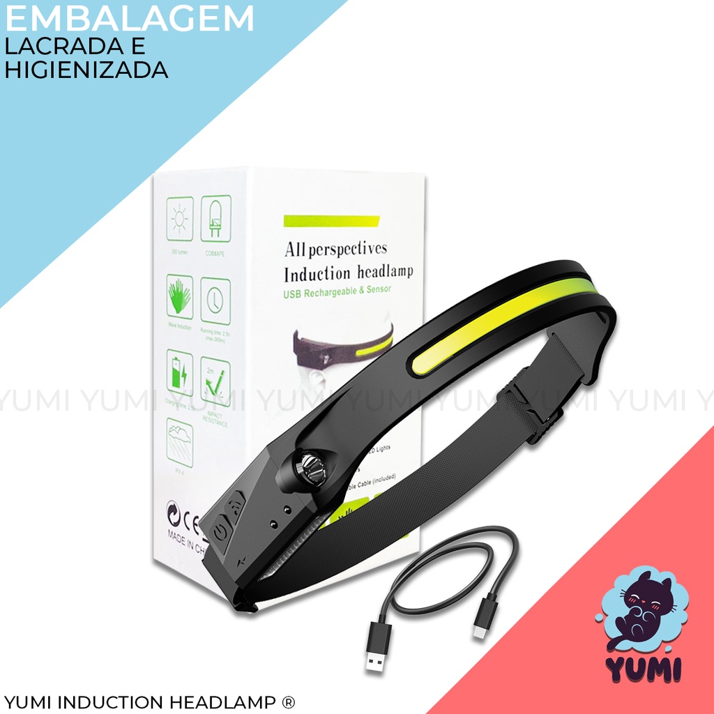Lanterna de Cabeça Led COB Caminhada Pesca Ciclismo High Power + Sensor Indutívo + Lanterna Lateral
