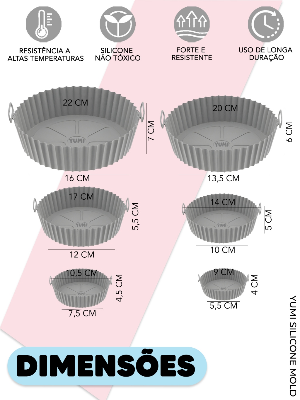 Formas Silicone Pra Fritadeira Air Fryer Micro-ondas Forno Com Alça 6 Peças/Conjunto + Resistente