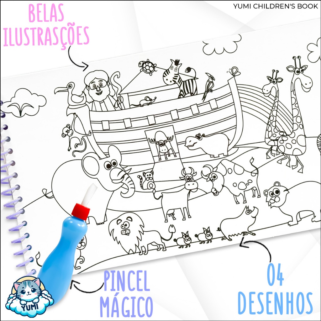 Surpresas com Água Arca de Noé Livro Infantil Pinta Com Água Capa Dura Agua book Aquabook